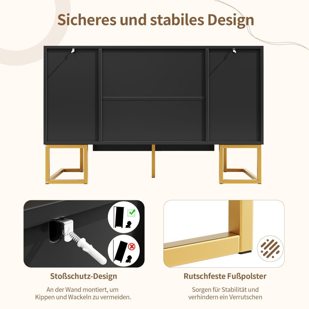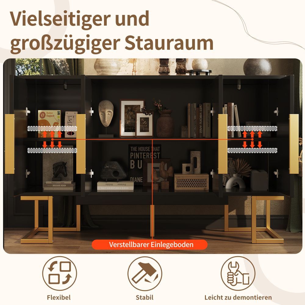 Moderner Seitenschrank 140x40x80 cm mit 4 Türen 2 Regalen Anrichte
