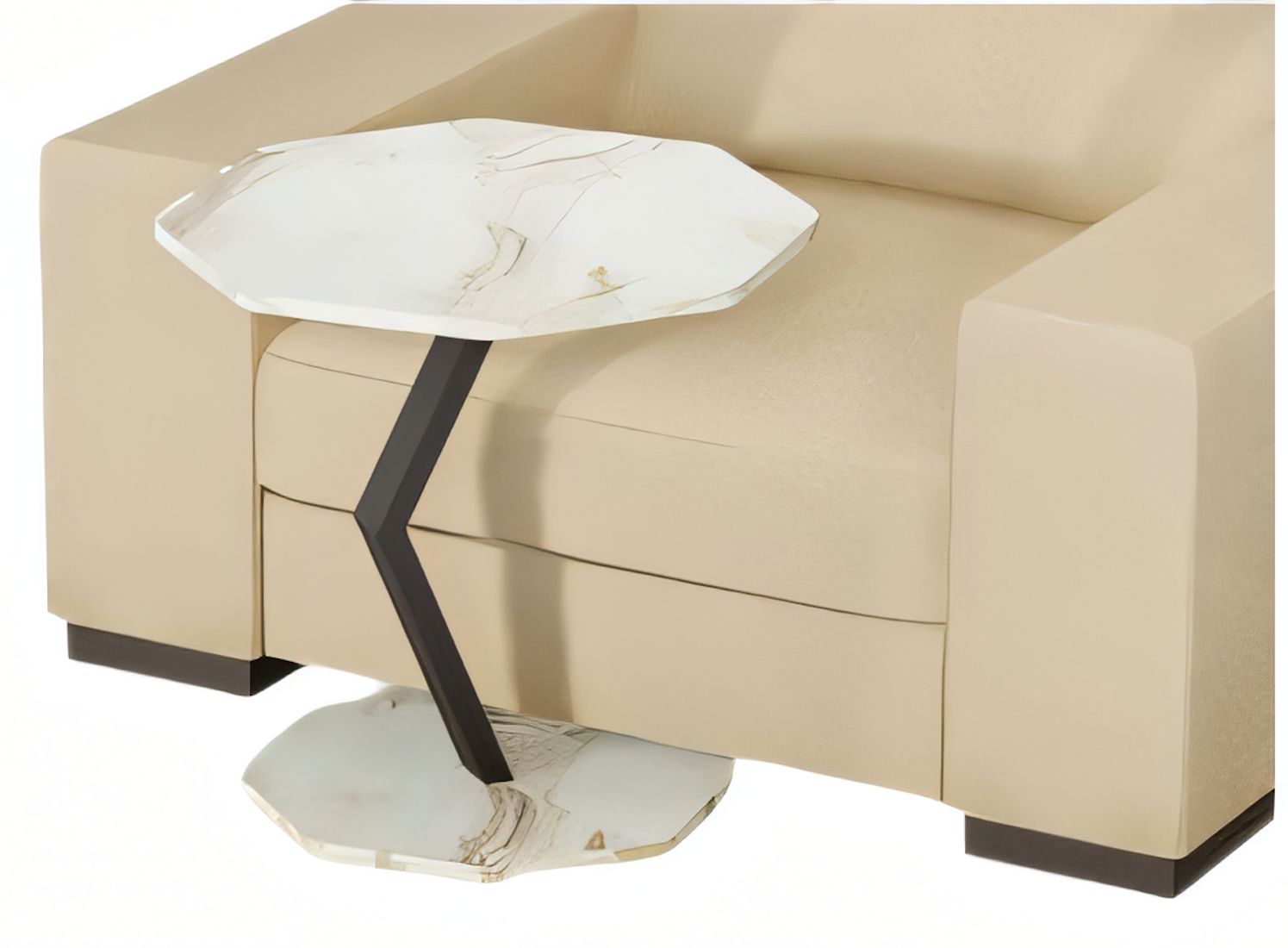 Moderner weißer Beistelltisch aus Holz und Edelstahl