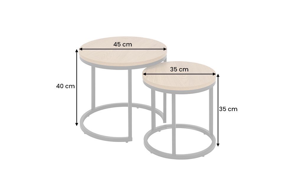 Modernes 2er Set Beistelltisch MARMO 45cm natur Wildeiche-Look schwarz Metall