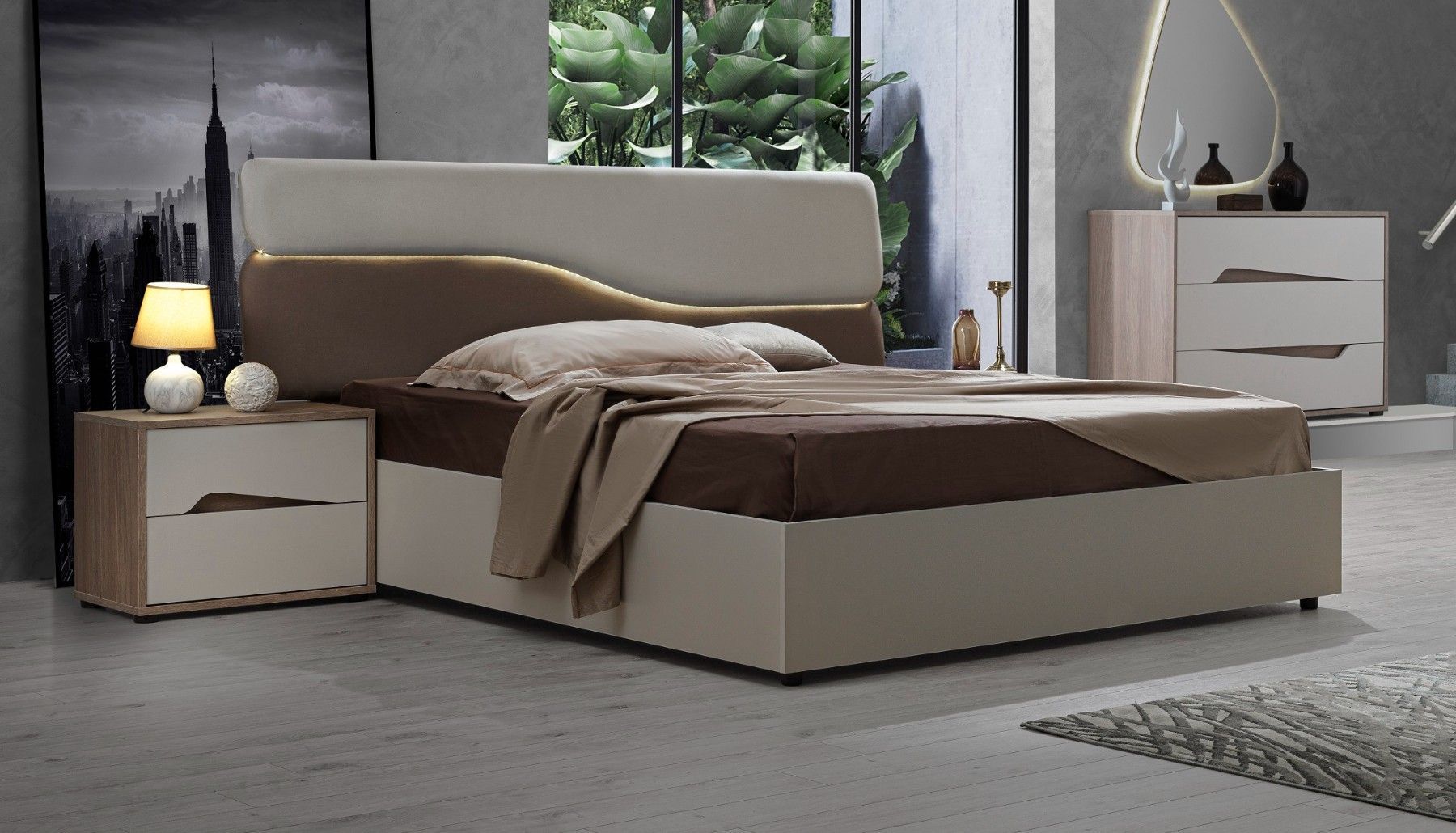 Modernes Doppelbett Soleil mit Polsterung aus Kunstleder in Weiß / Silber