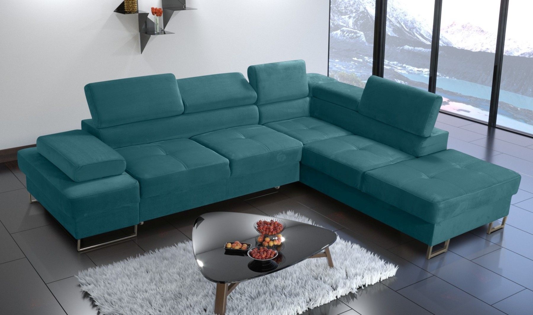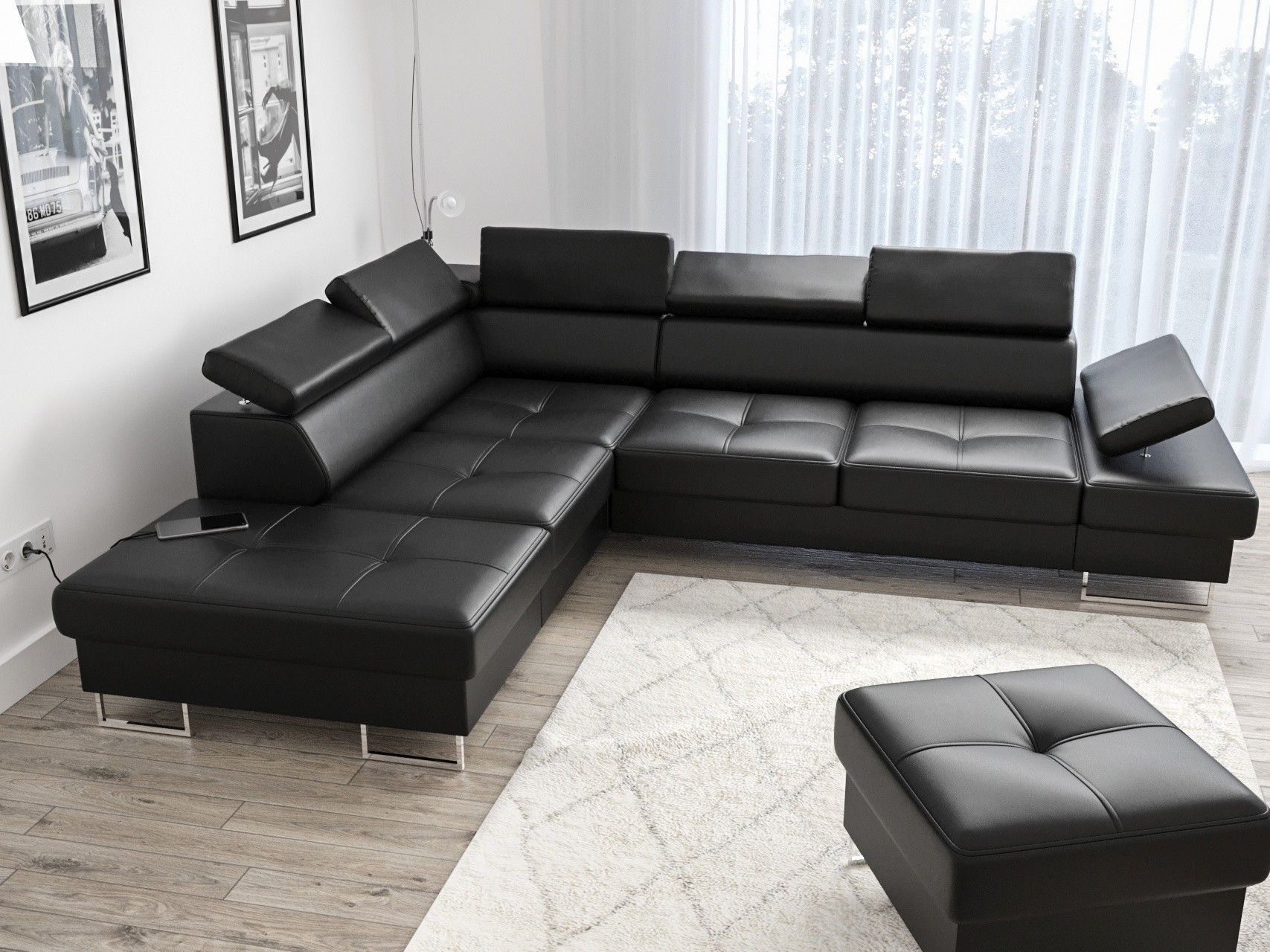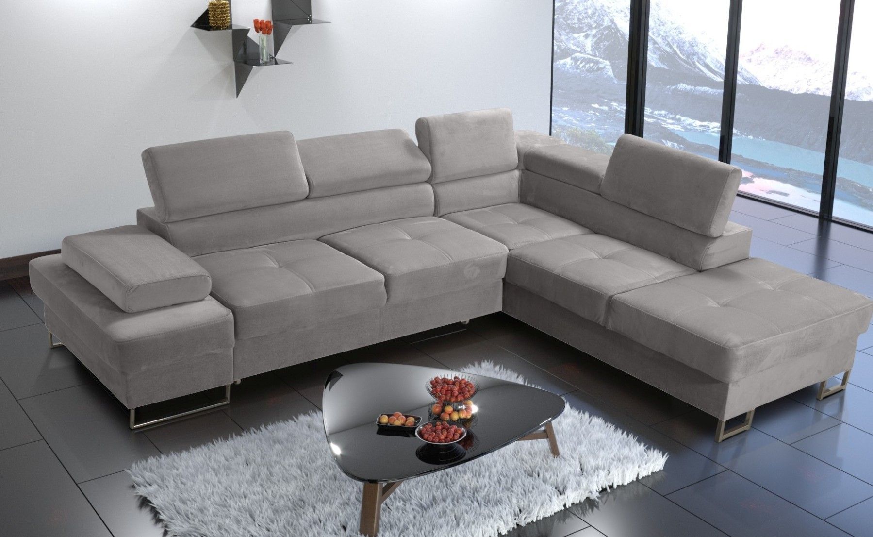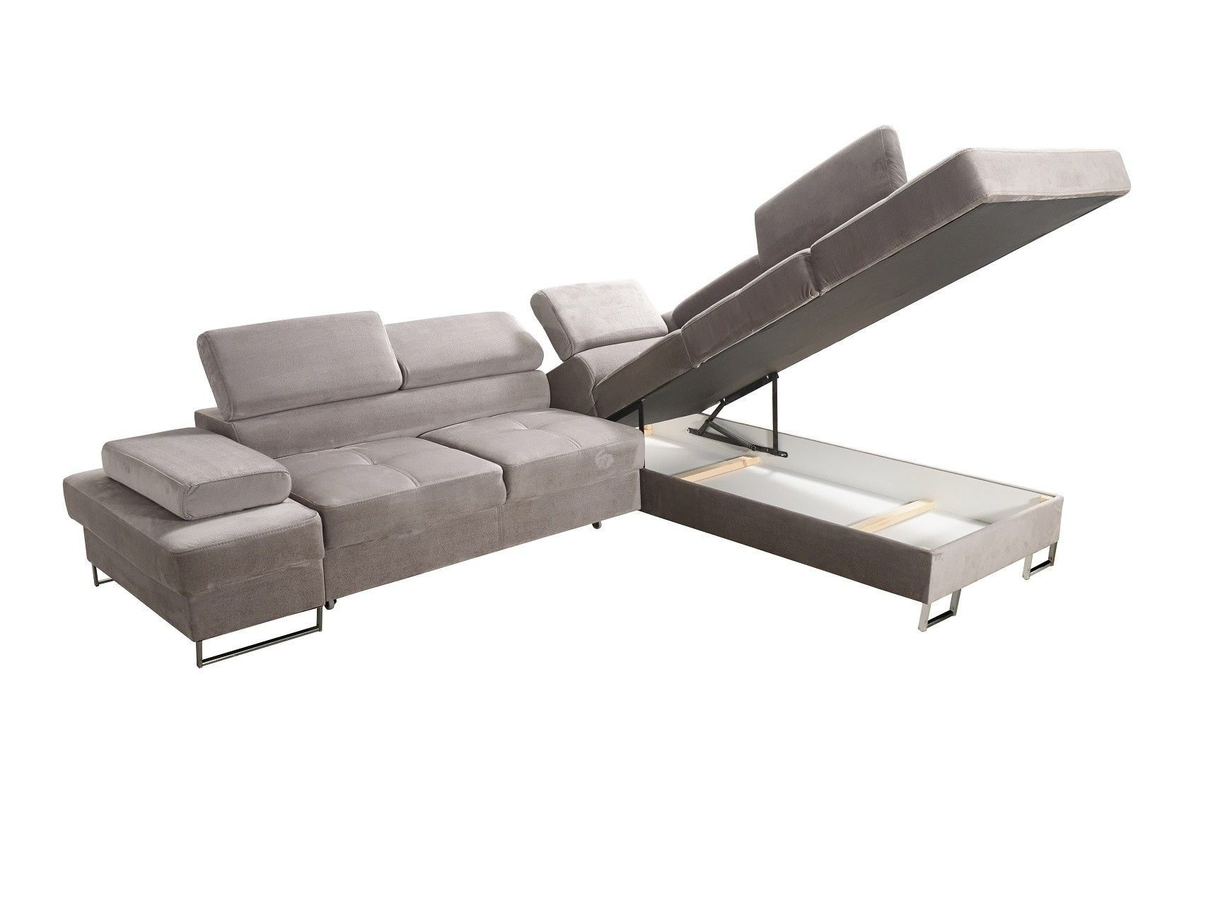 Modernes Ecksofa Galaxy mit 5 verstellbaren Kopfstützen, Schlaffunktion, Bettkasten