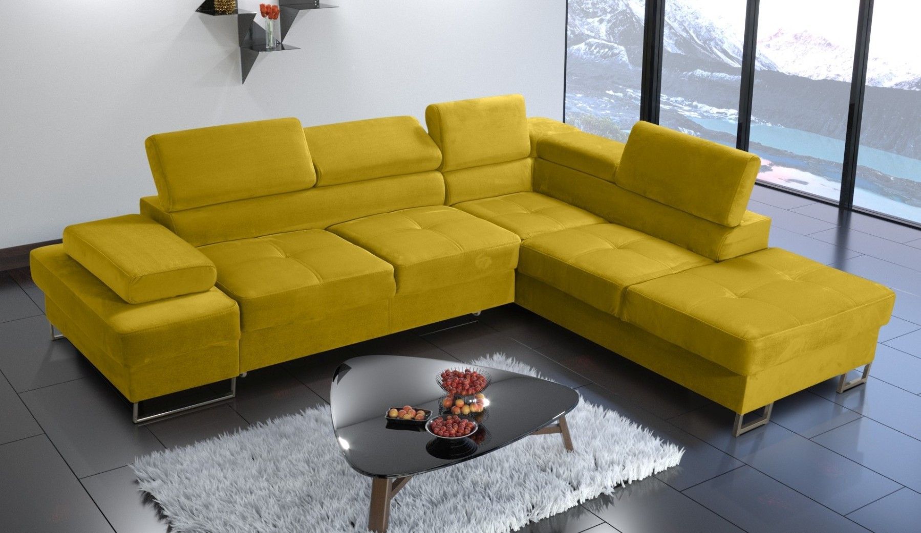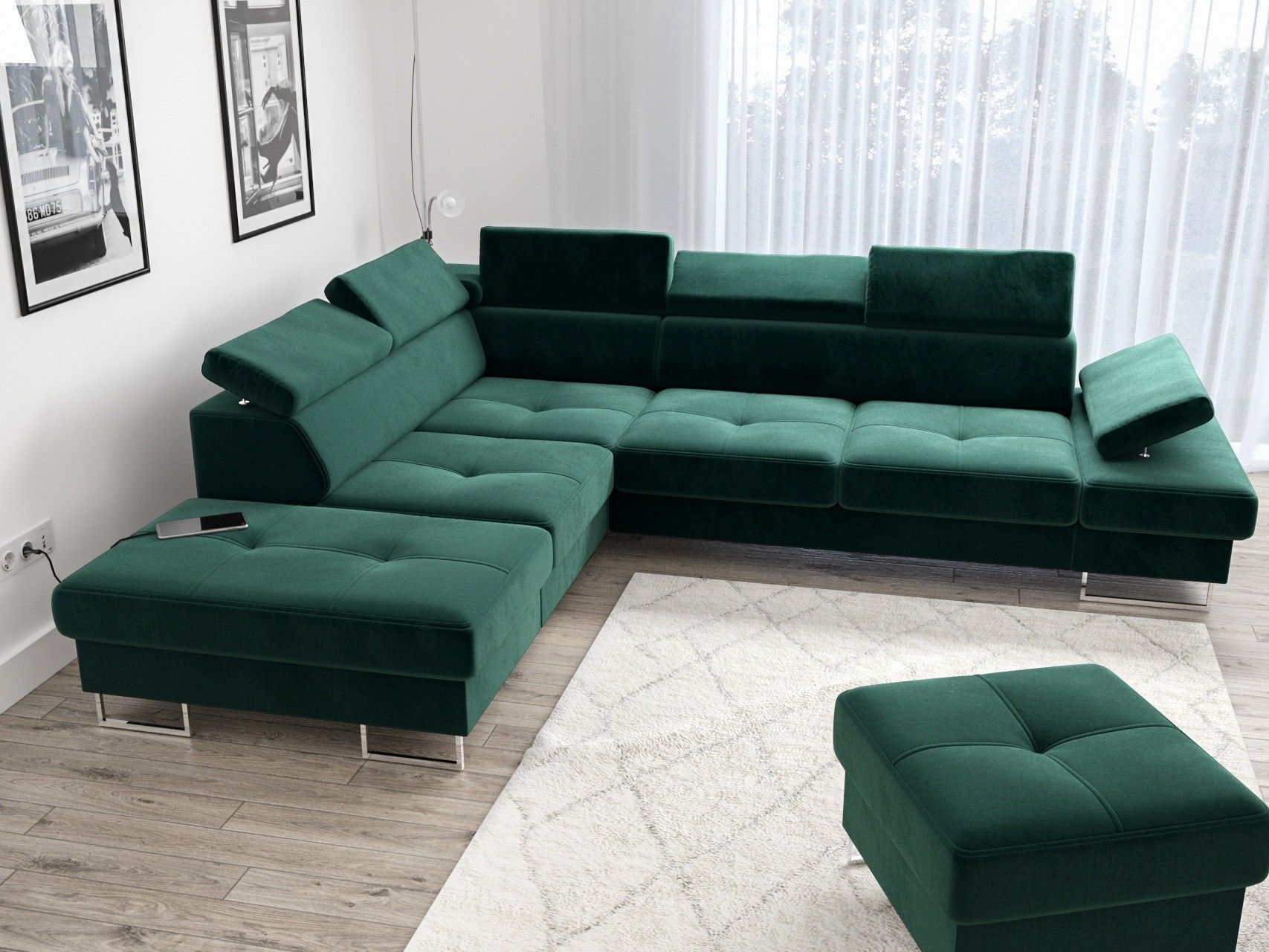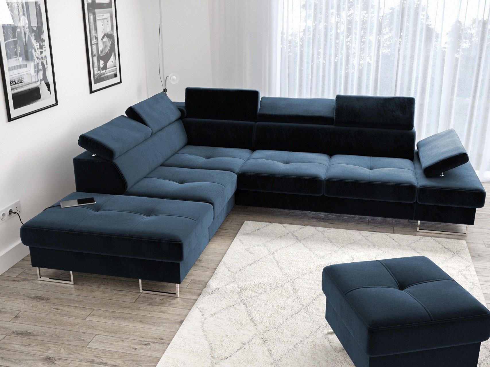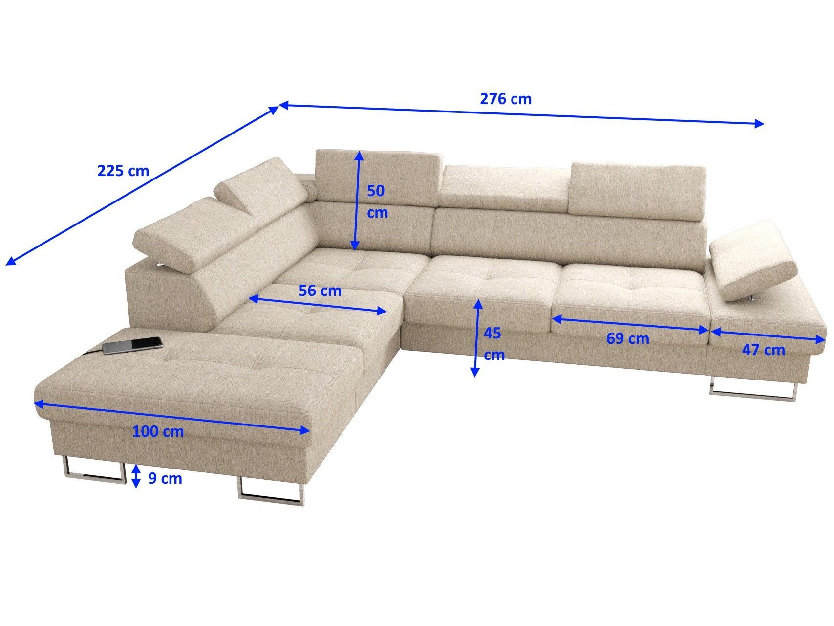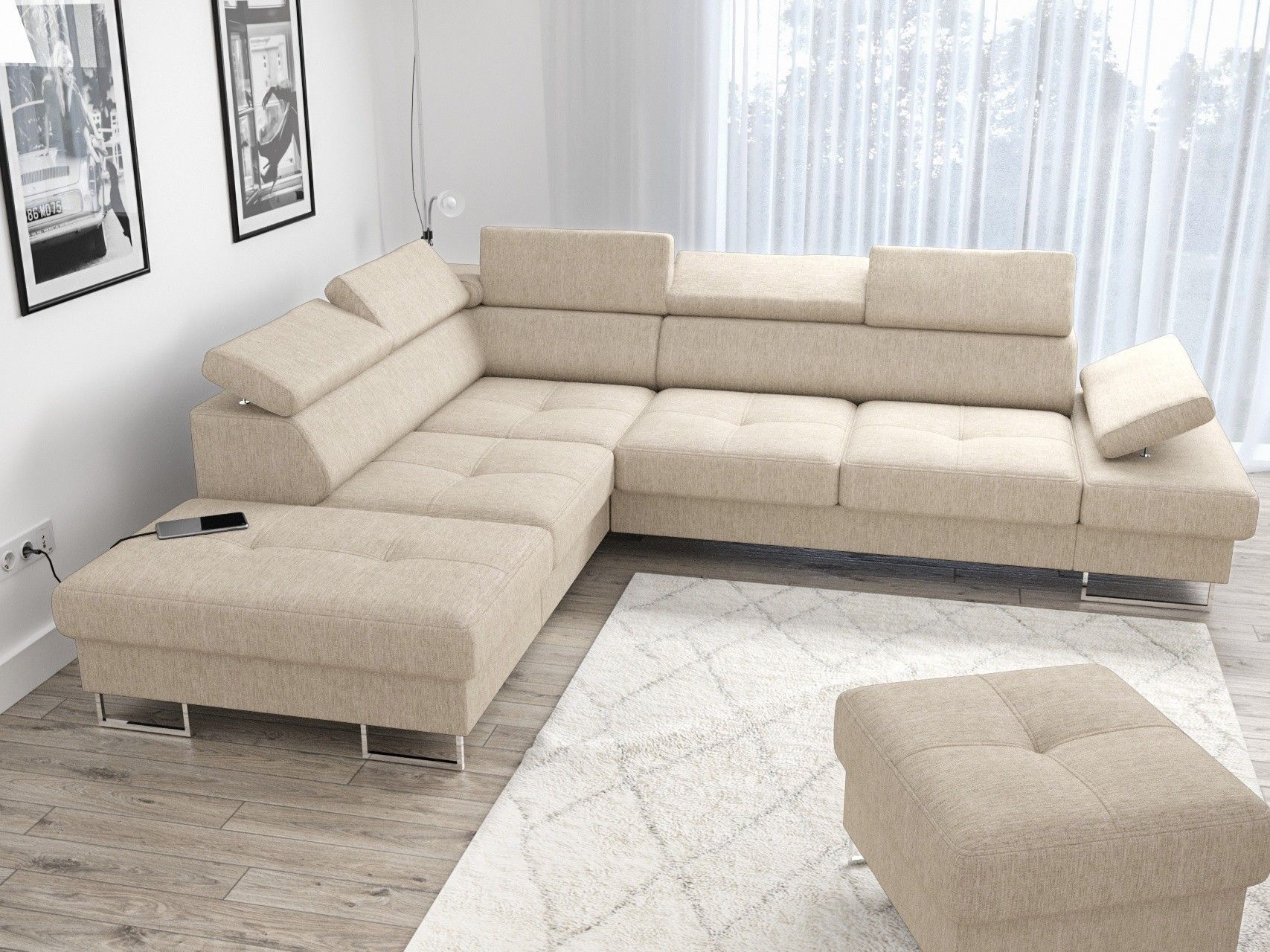 Modernes Ecksofa Galaxy mit 5 verstellbaren Kopfstützen, Schlaffunktion, Bettkasten