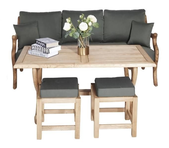 Modernes Gartenmöbel Sofa 3 Sitzer Sitzmöbel Esstisch Holz Hocker Polsterhocker