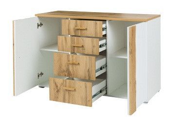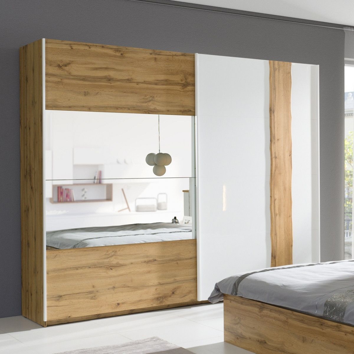 Modernes Schlafzimmer Set Forest Hochglanz weiss in Altholz-Design