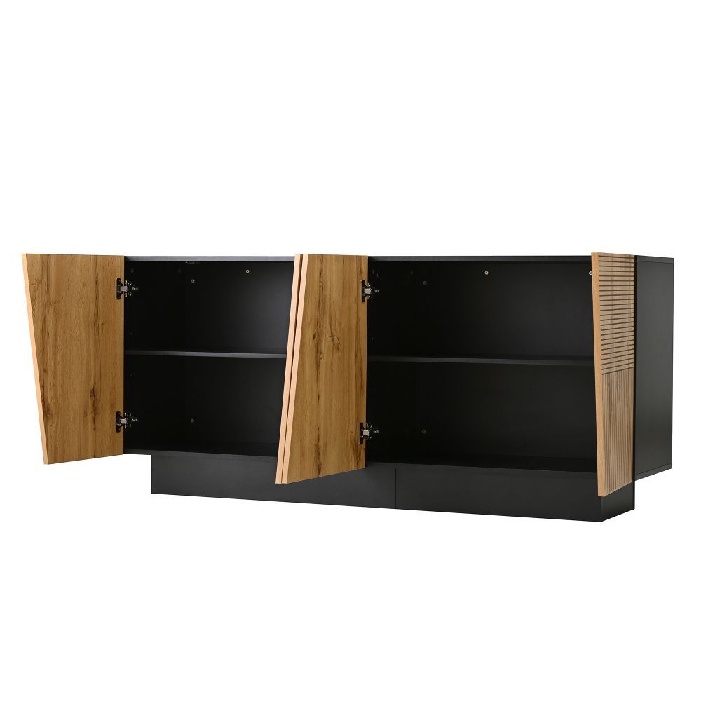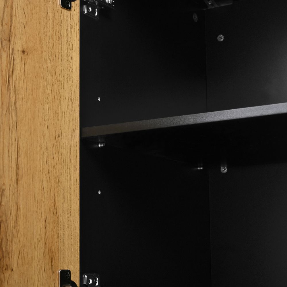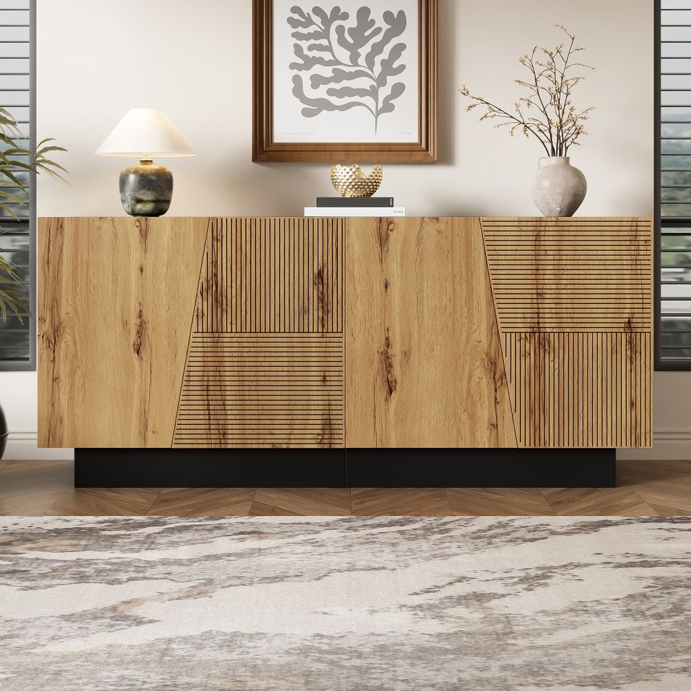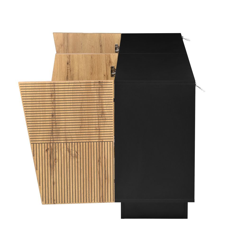 Modernes Sideboard mit großem Stauraum und geometrischem Design. Der verstellbare Einlegeboden ermöglicht flexible Aufbewahrung. Ideal für Wohnzimmer, Schlafzimmer oder Flur. Gefertigt aus robuster Spanplatte, praktisch und stilvoll für den Alltag.