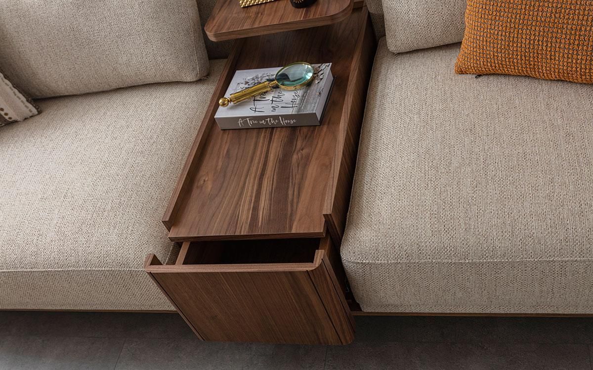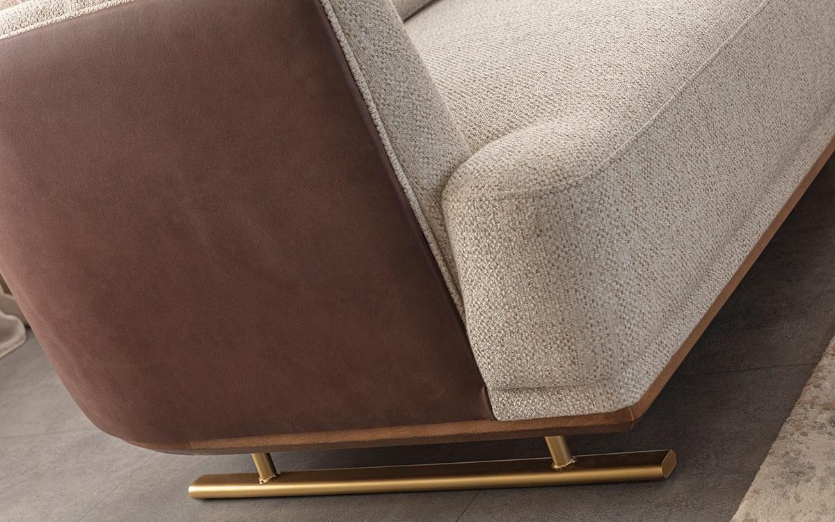 Braunes 3-Sitzer Sofa + 3-Sitzer Sofa mit modernen Holzelementen