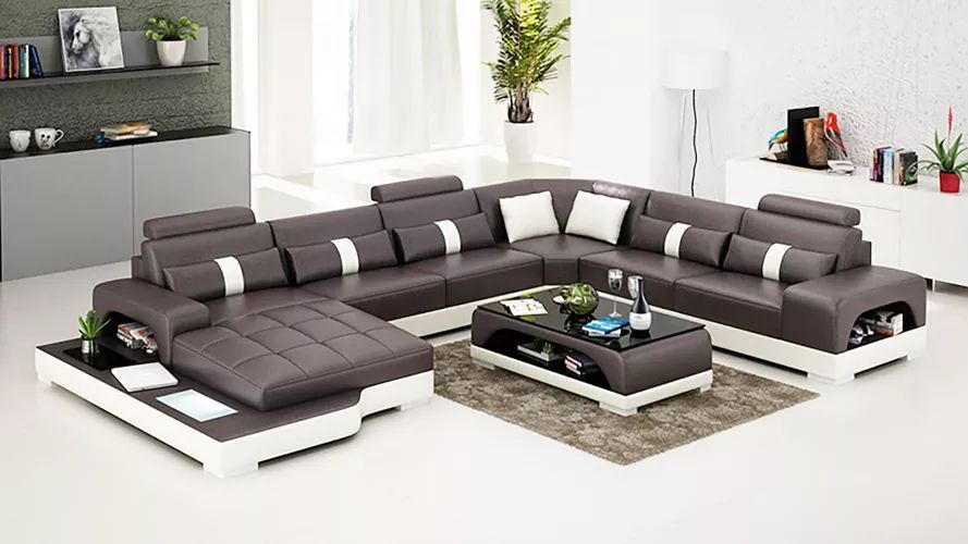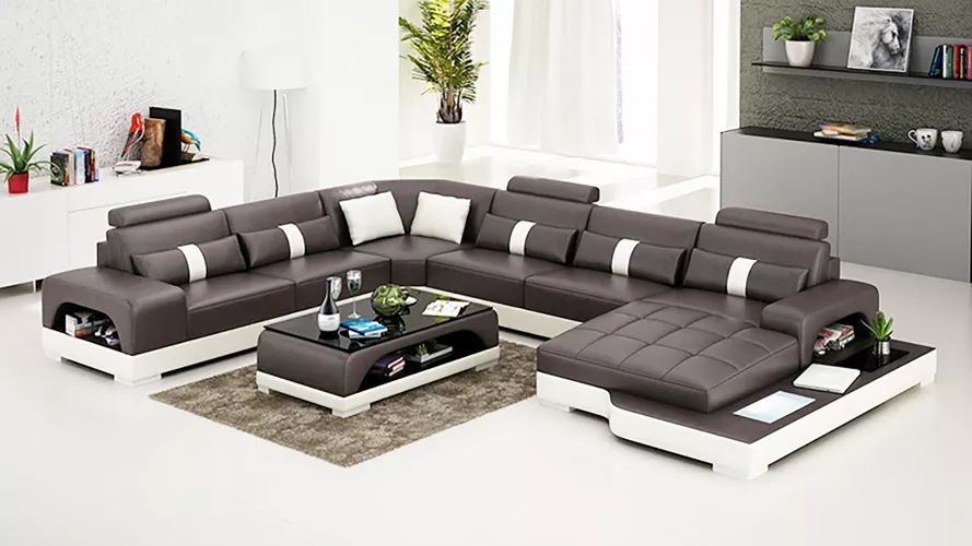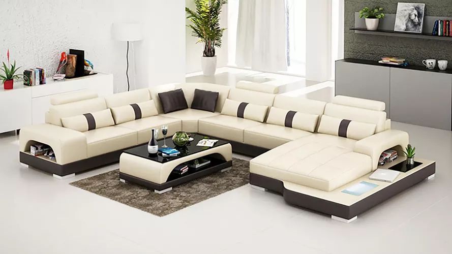 Modernes Sofa Ecksofa UForm Couchtisch Ledersofa Ecksofa Polster Orange Luxus