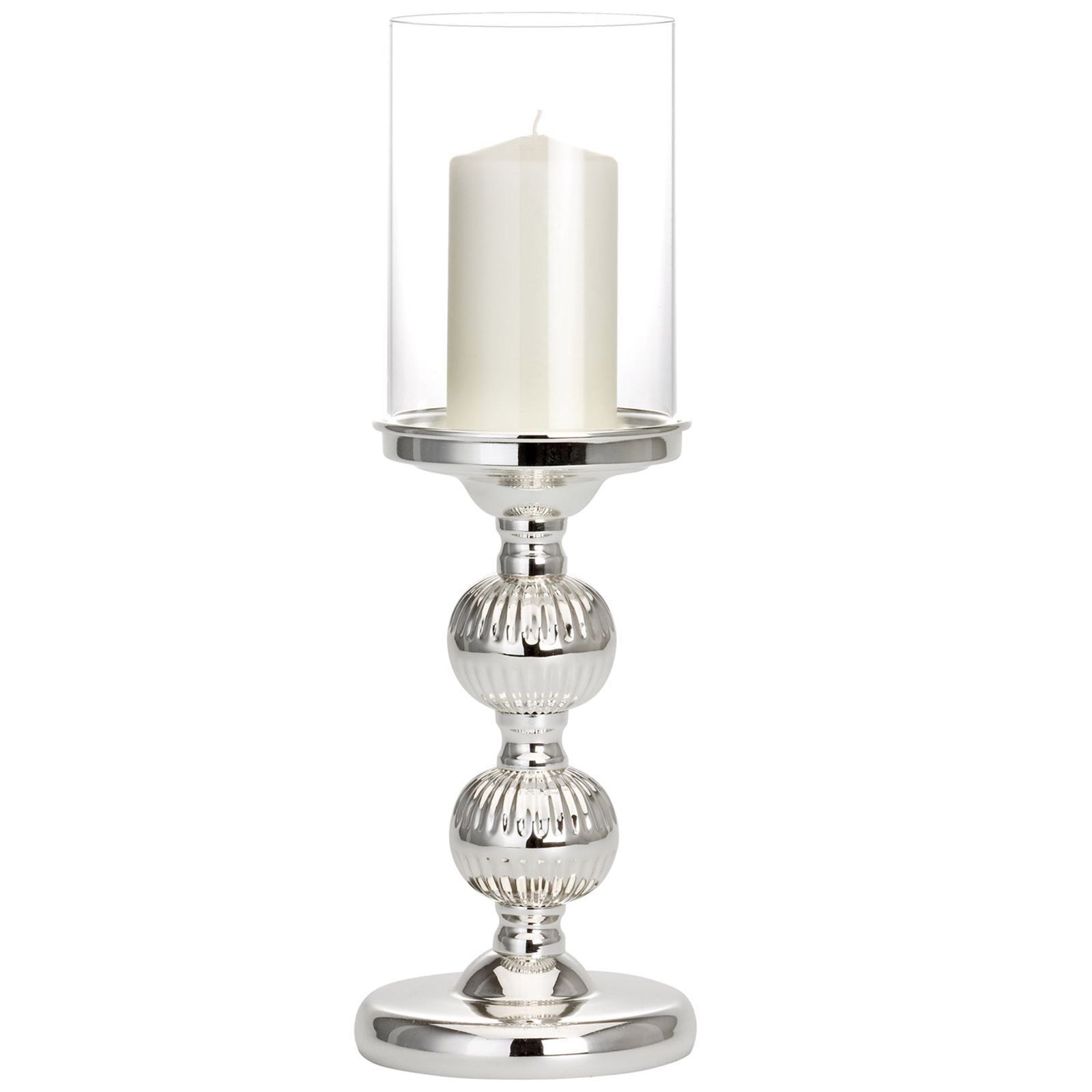 modernes versilbertes Windlicht Rillen mit Kugelfuß
