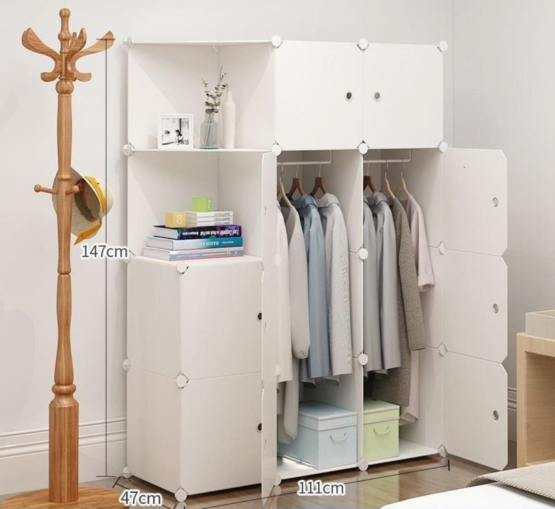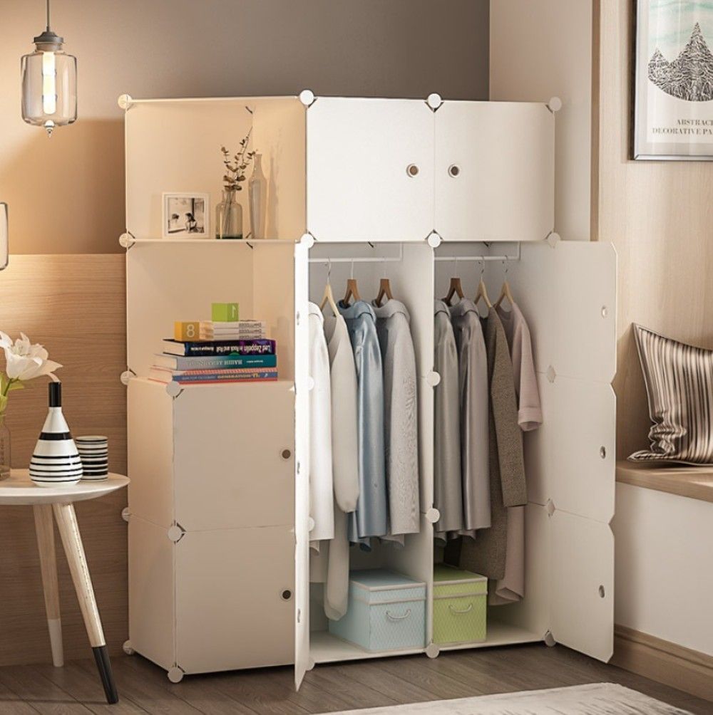 Modularer Kleiderschrank für Kleidung, weiß, Regale, Kleiderstange, geräumig, groß, X