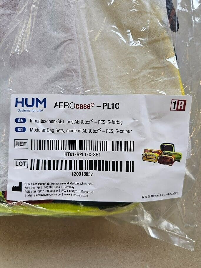 HUM AEROcase Modultaschenset mit 5 Modulen Modultaschenset passend für viele Notfallbehältnisse 100% kompatibel zu AEROcase® - Pro First Responder PL1C Notfallrucksack L. Lieferumfang: 1 x blau, ca. 25 x 21 x 10 cm 1 x rot, ca. 24 x 12 x 10 cm 1 x gelb, ca. 24 x 12 x 10 cm 1 x grün, ca. 34 x 15 x 4