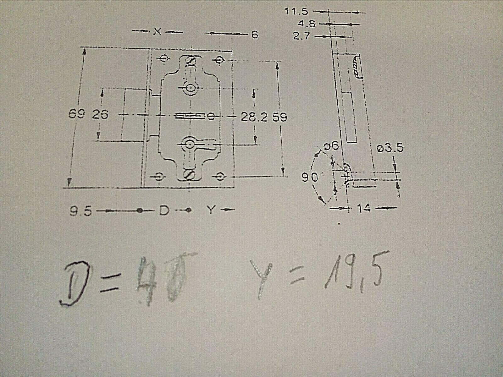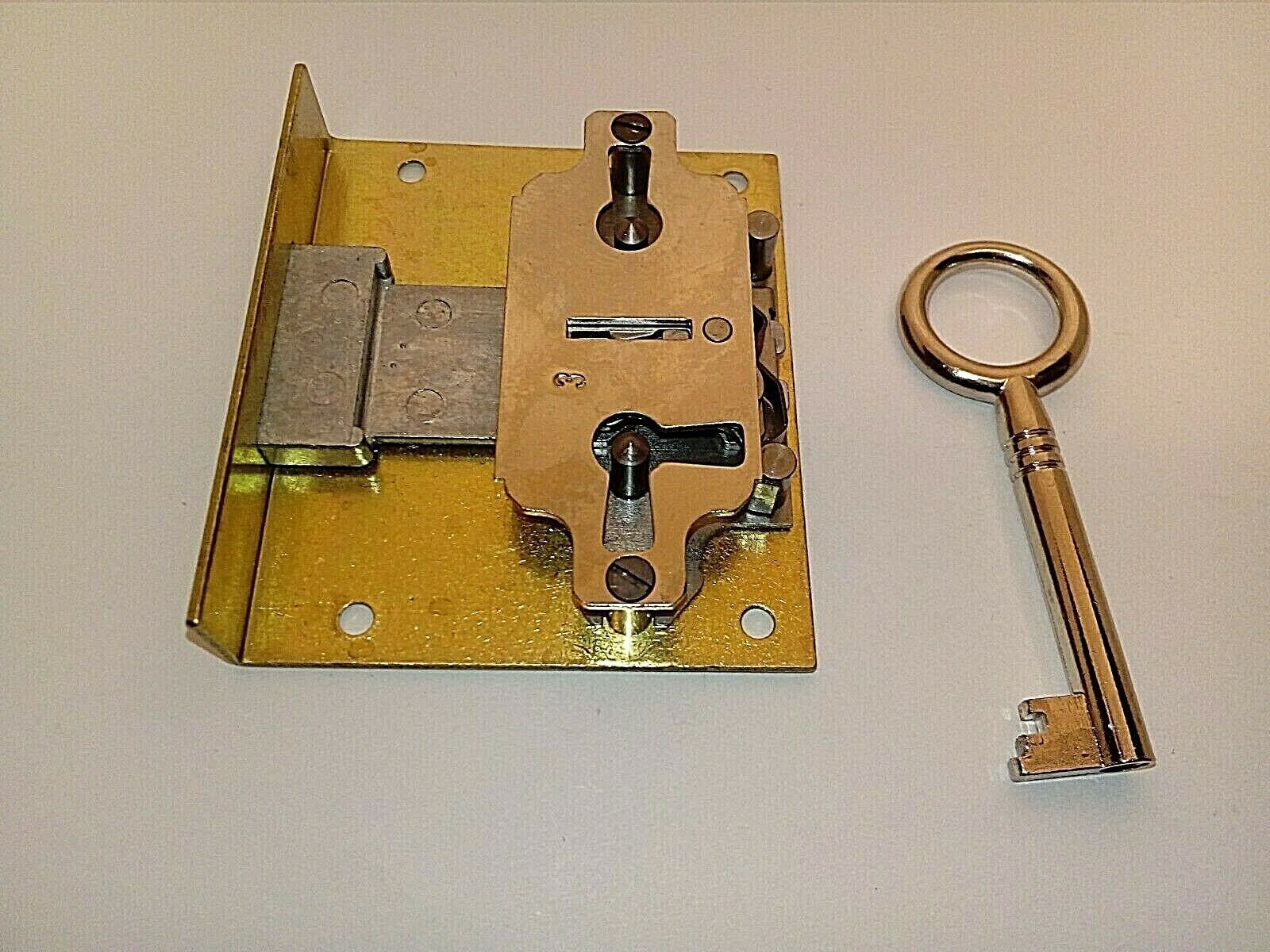 Möbel Einlaßschloß 40 mm Dornmaß . Rechts , Links und Schublade verwendbar . Schloßkasten Messing . 1 Schlüssel vernickelt . Preis pro Stück .