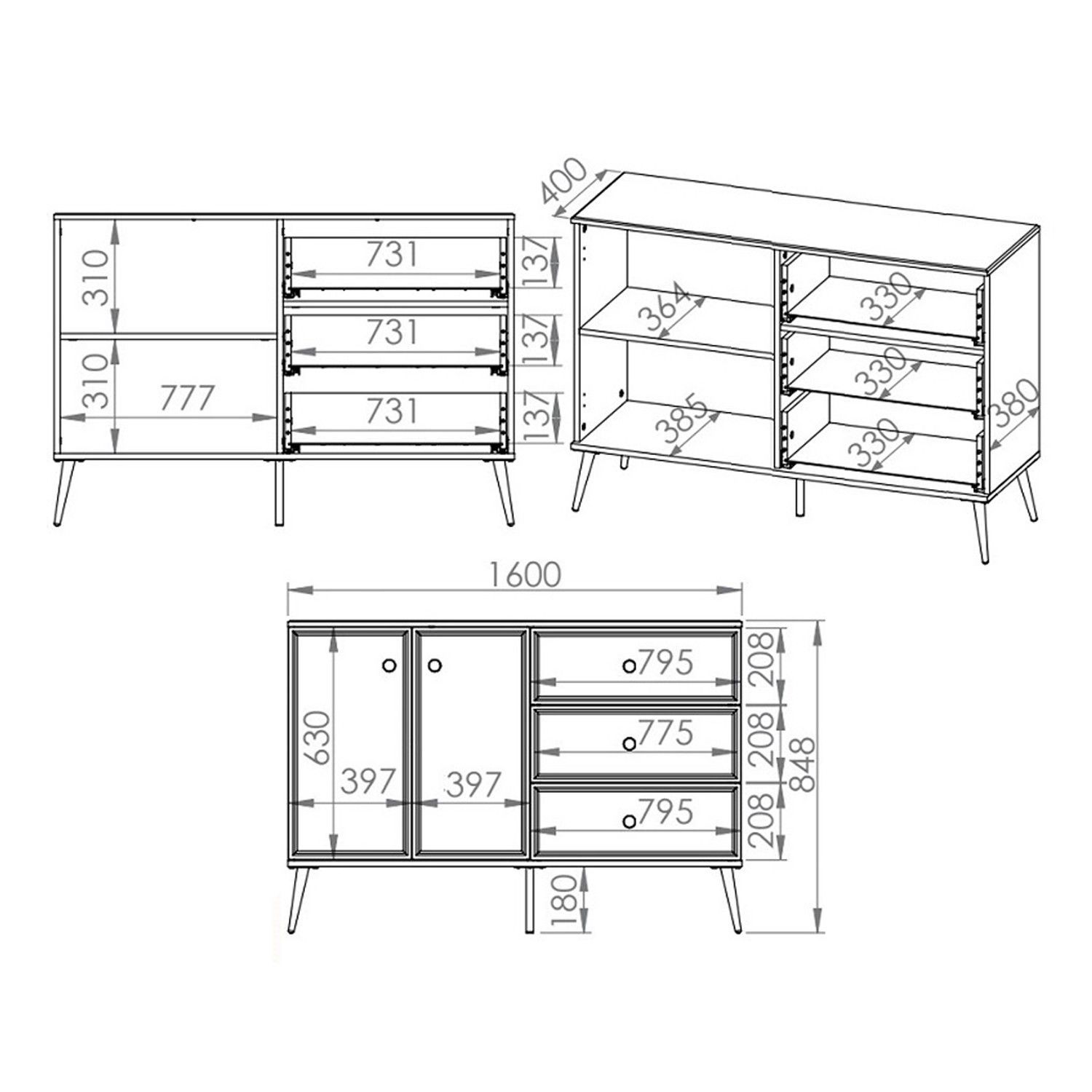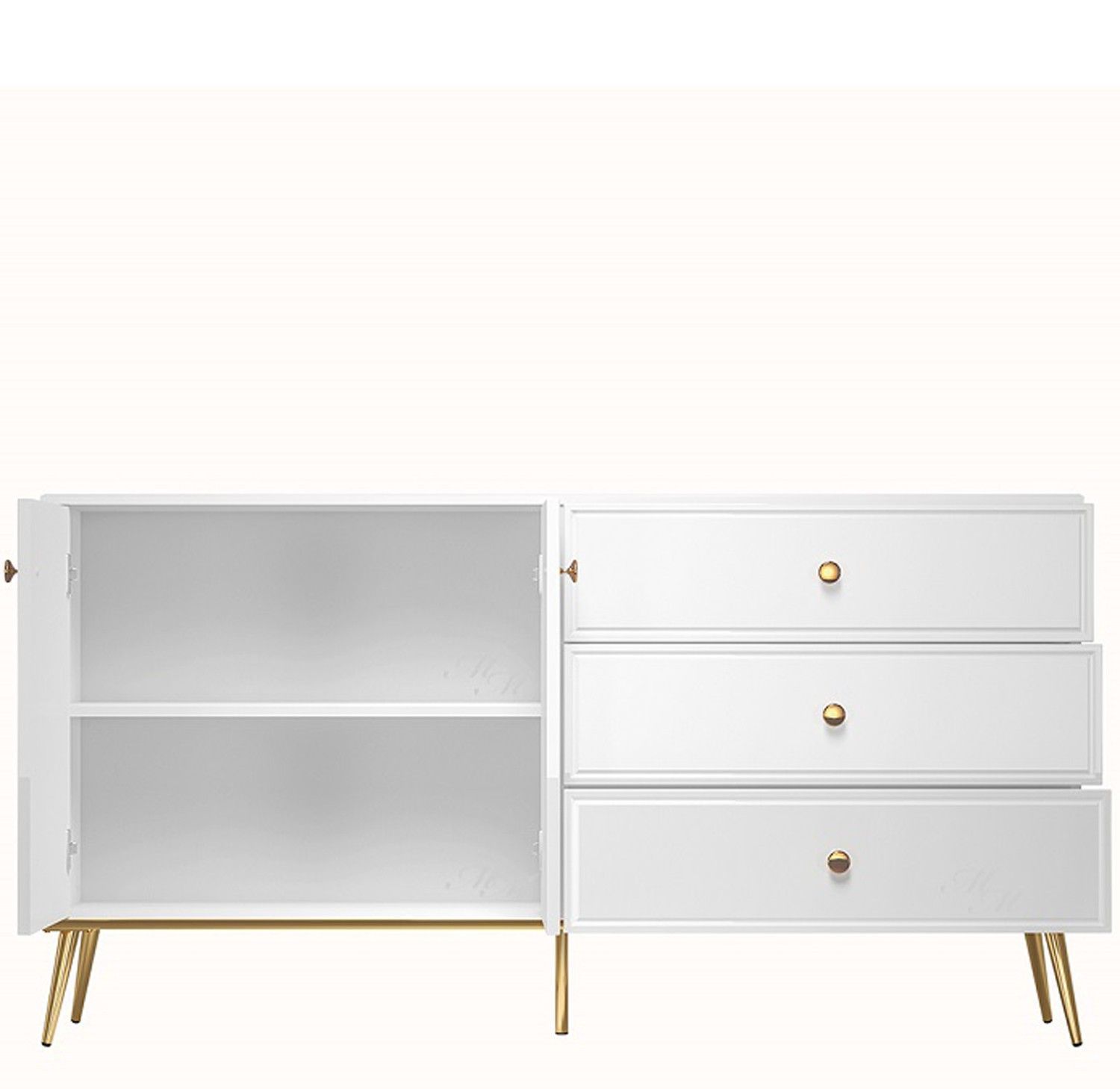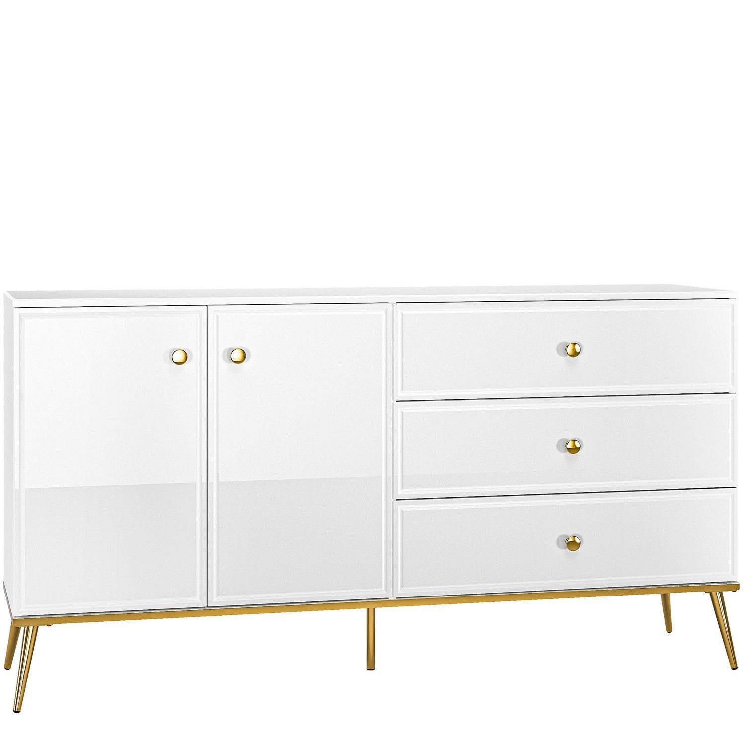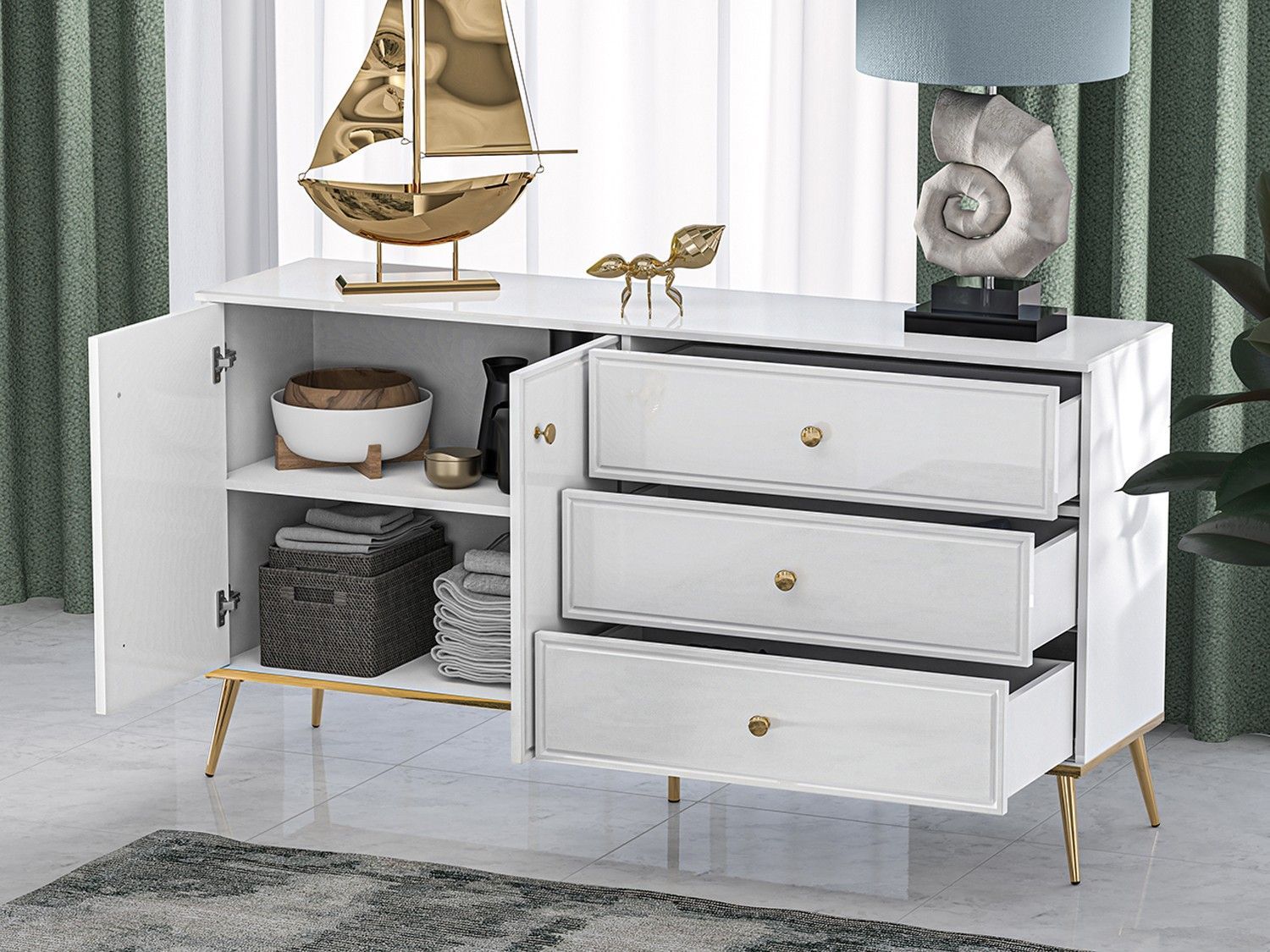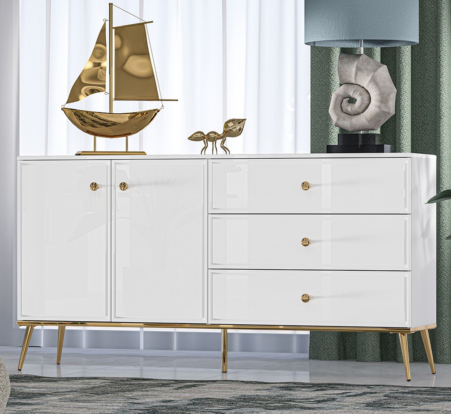 Möbel große Kommode Glamour Style weiß glänzend Goldin 04 mit Schubladen