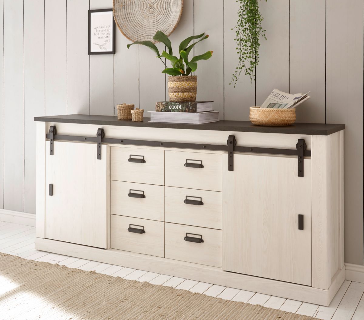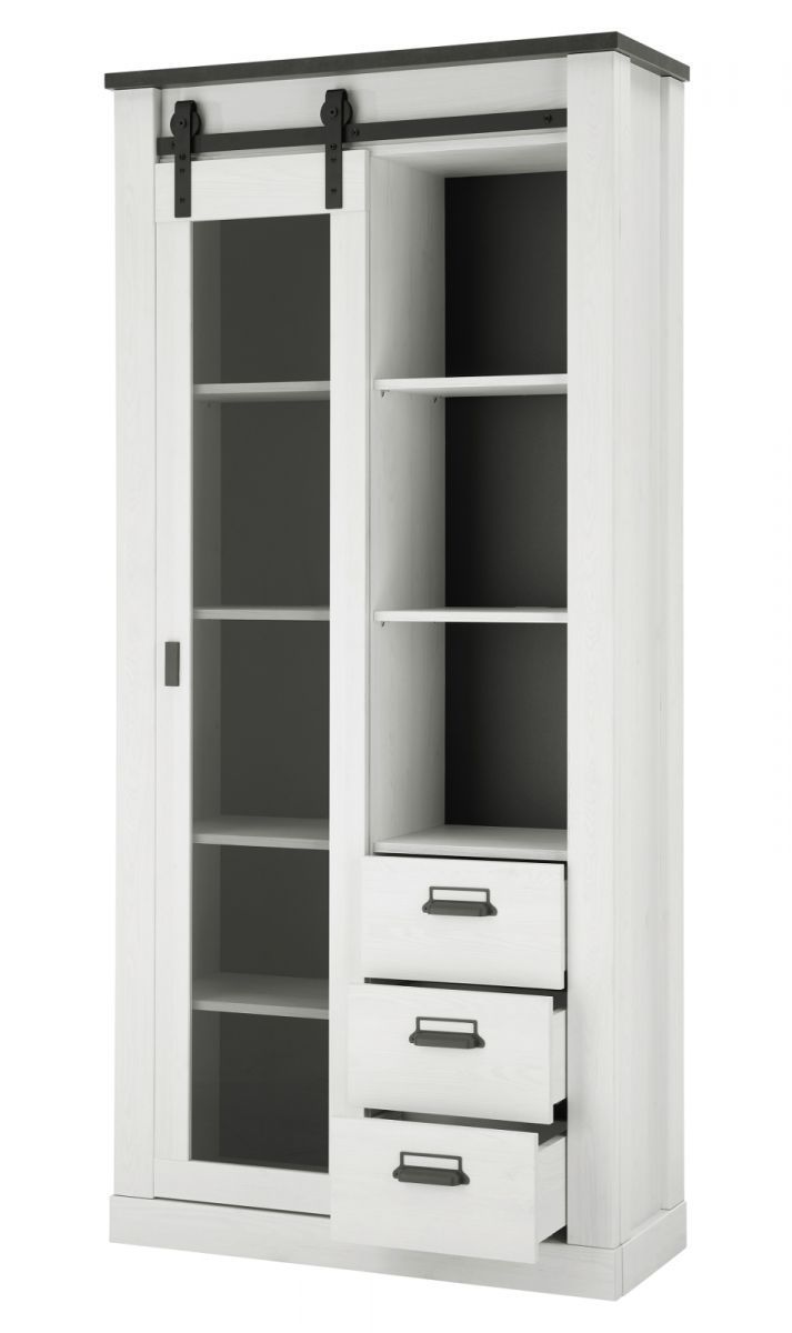Möbel Set weiß Pinie Wohnzimmer Esszimmer Sideboard und Vitrine Schrankset Stove
