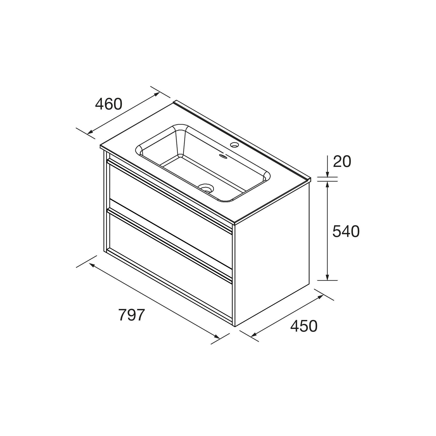 Möbel + Waschbecken ATTILA 800 2 Schubladen BLUE SATIN