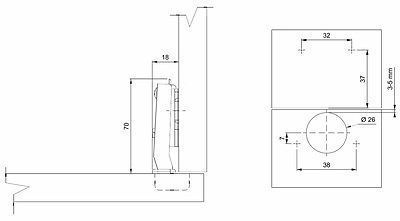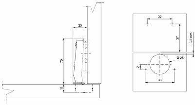 Möbelscharnier 26mm Mini Kreuzplatte Euro Scharnier + Dämpfer