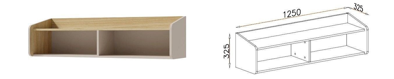 Komode mit offenem Regal 2 Schubladen & Fächer 125x115x42cm Modern sandbeige
