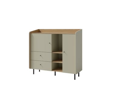 Komode mit offenem Regal 2 Schubladen & Fächer 95x115x42cm Modern sandbeige