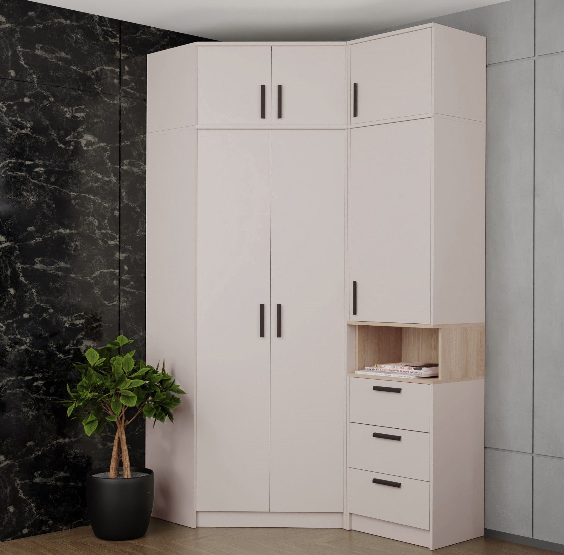 Möbelset GRANT Set 17C - Eckschrank, Kleiderschrank, Regal Schlafzimmer Jugendzimmer