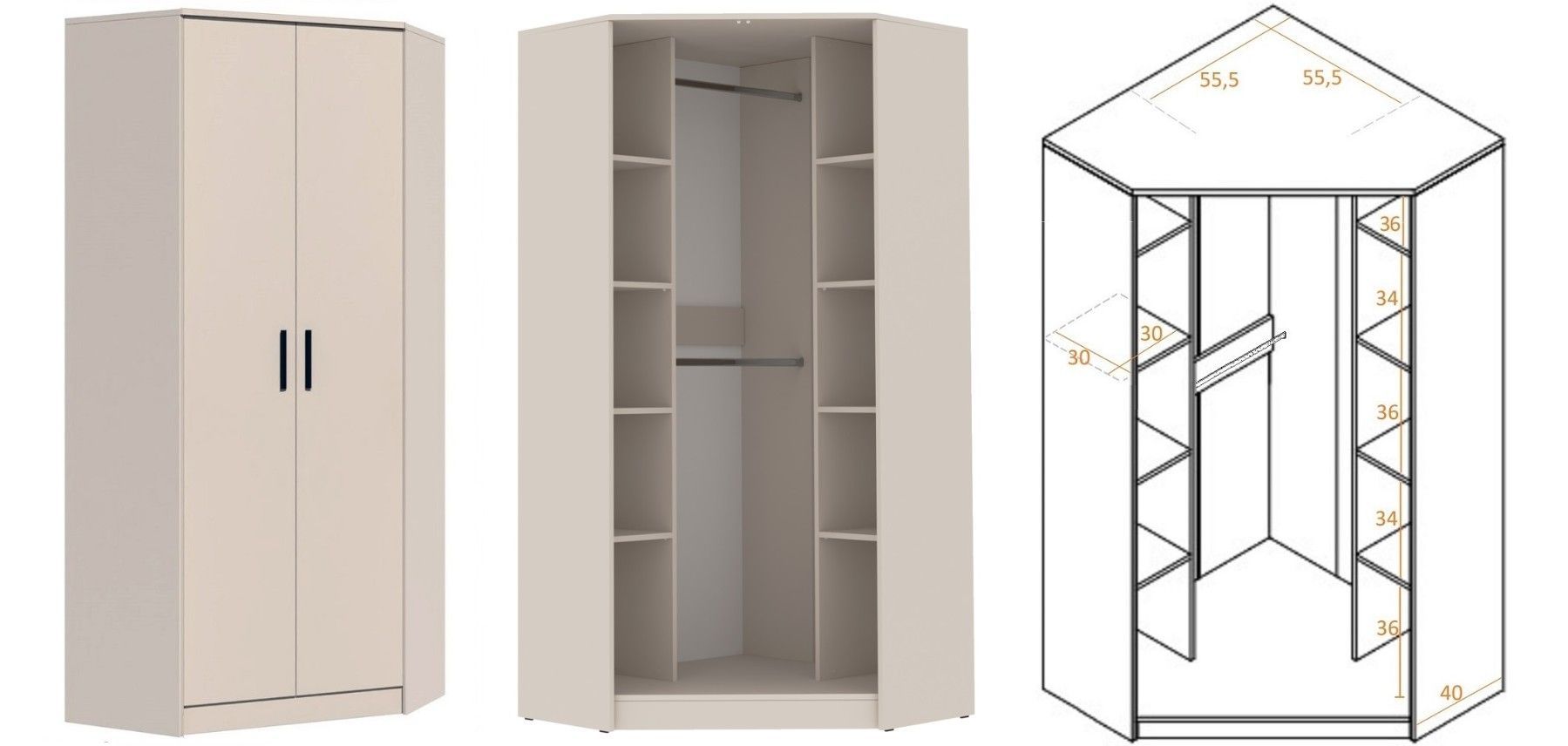 Möbelset GRANT SET 41 - Eckschrank Kleiderschrank, 4 Regale Schlafzimmer Jugendzimmer