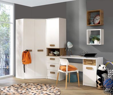 Möbelset GRANT Set 04 Eckschrank, Kleiderschrank, Schreibtisch, Regal Jugendzimmer