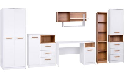 Möbelset GRANT Set O/B Kleiderschrank, Schreibtisch, Regal, Kommode Jugendzimmer