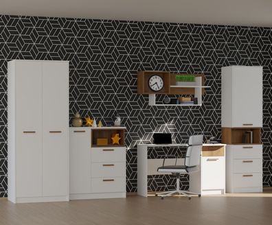 Möbelset GRANT Set F/B Schreibtisch Regal Kleiderschrank Jugendzimmer Arbeitszimmer