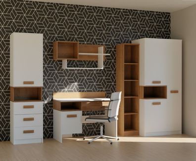 Möbelset GRANT Set I/B Schreibtisch Regal Kleiderschrank Jugendzimmer Arbeitszimmer