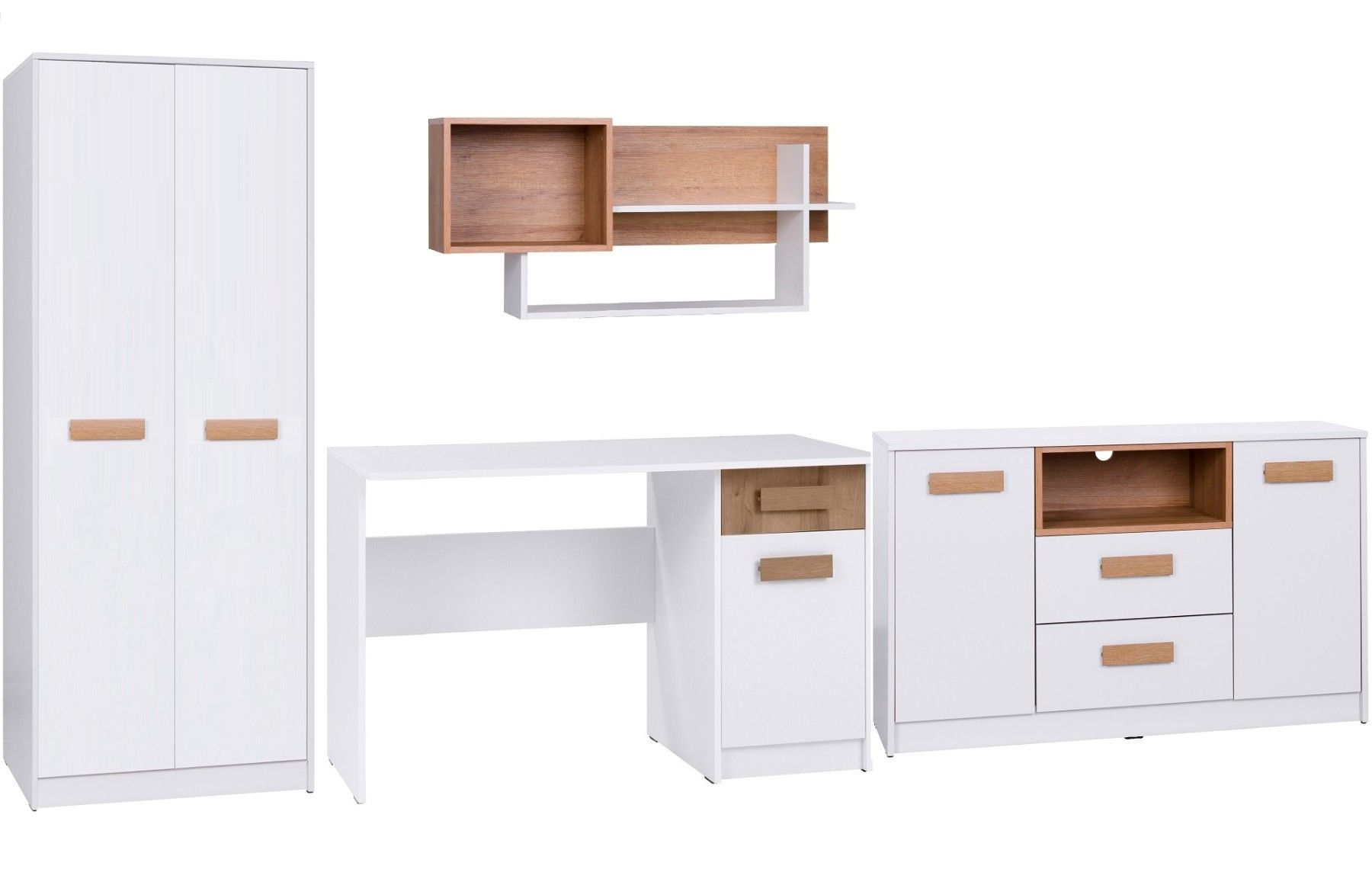 Möbelset GRANT Set O/B Kleiderschrank, Schreibtisch, Regal, Kommode Jugendzimmer