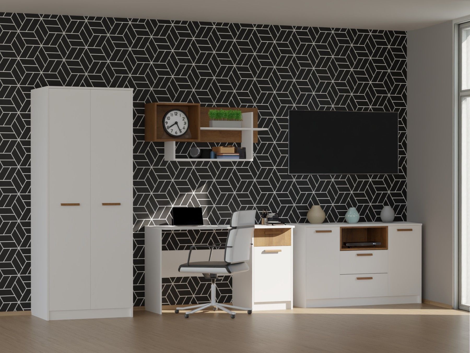 Möbelset GRANT Set 30 Kleiderschrank, Schreibtisch, Regal Jugendzimmer Arbeitszimmer