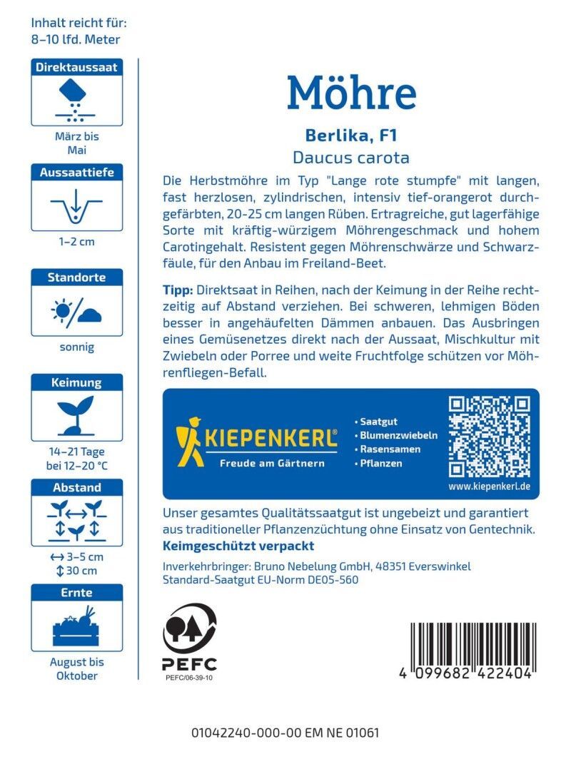 Kiepenkerl Möhre Berlika, F1, Herbst- u Lagermöhre - resistent - hoher Carotin-Gehalt