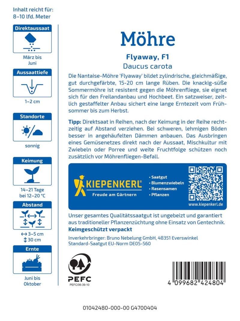 Kiepenkerl Möhre Flyaway, F1, Nantaise-Möhre - resistent gegen Möhrenfliege - für Beet u