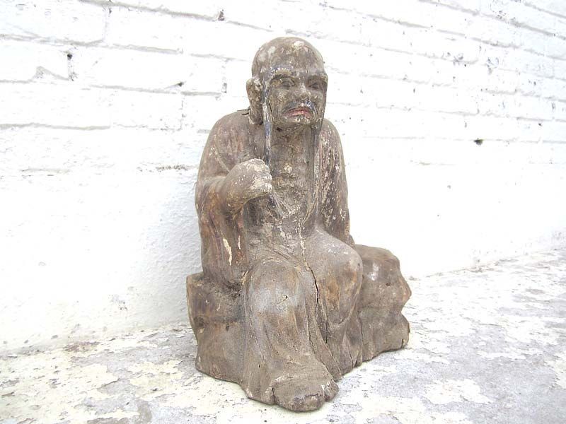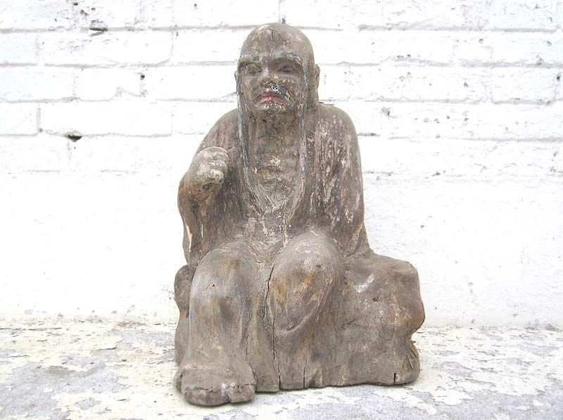 Moench im Gespraech sitzend Statue Figur Skulptur Pappelholz China 1910 von Luxury Park