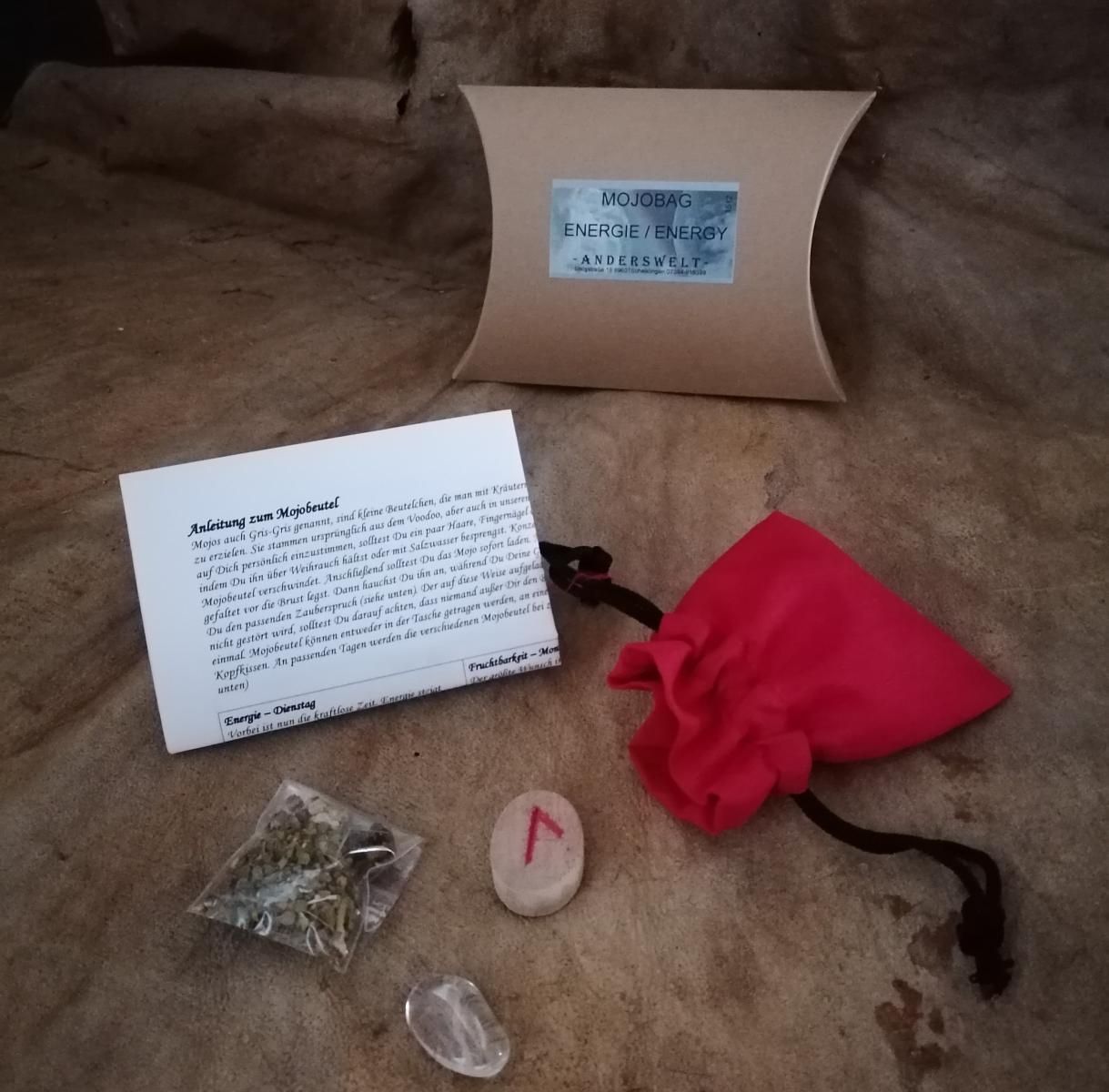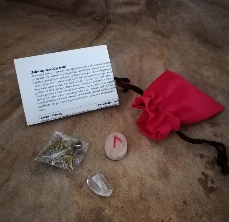 Mojo-Bag Energie mit Rune Kräuter Heilstein Anleitung Runenset