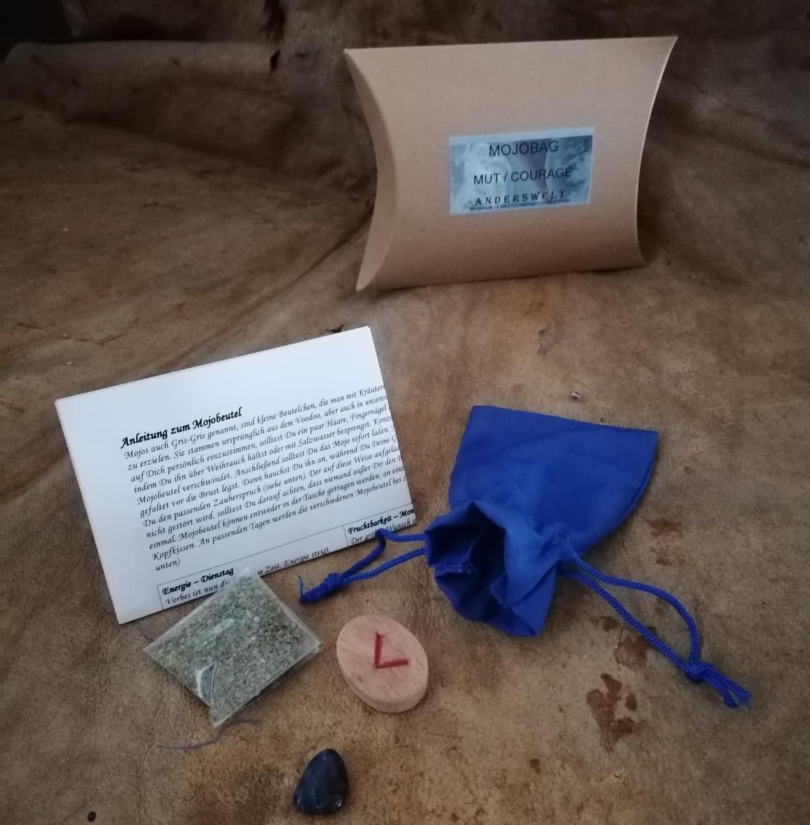 Mojo-Bag MUT Rune Kräuter Heilstein Anleitung Ritualset