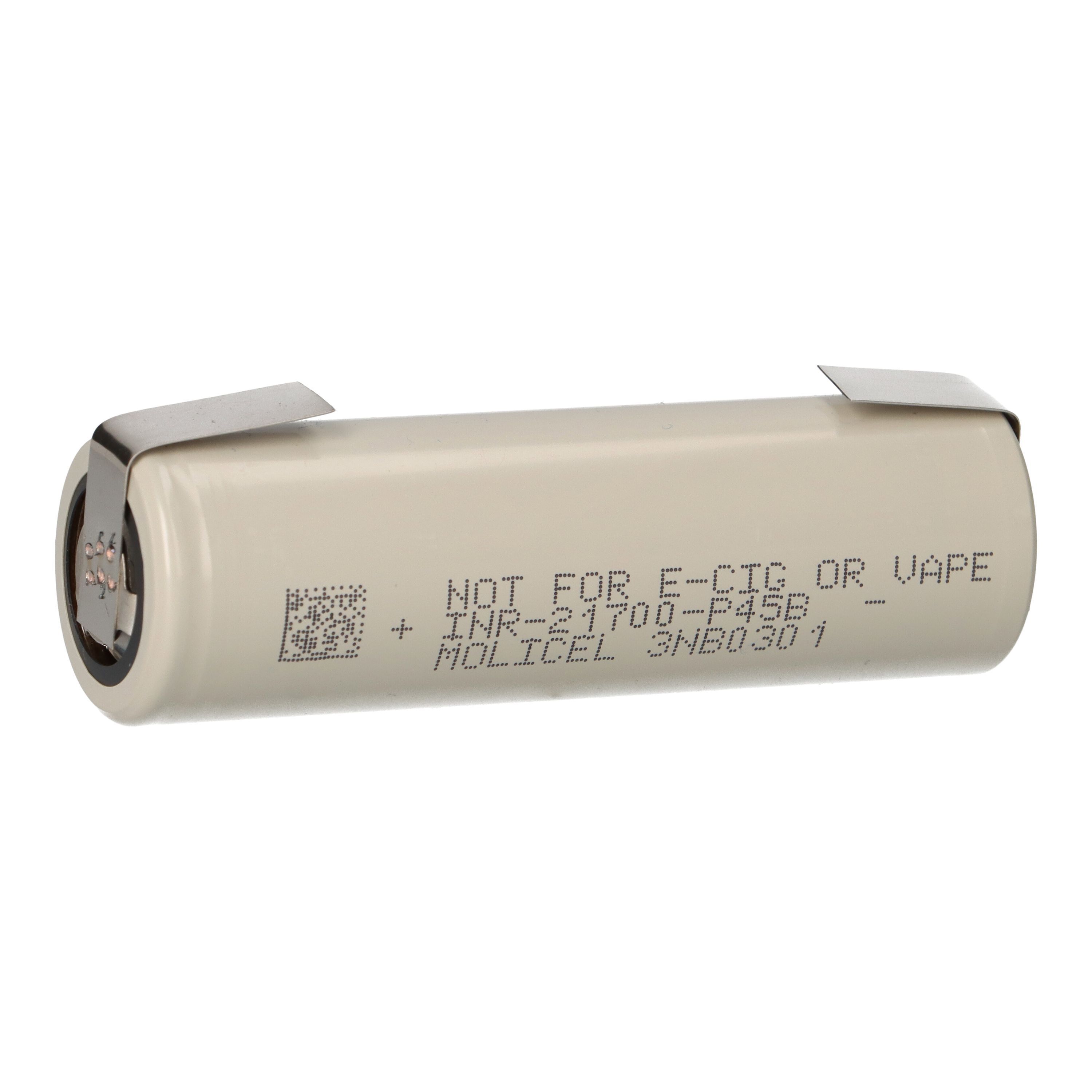 Molicel INR21700-P45B 3,7V 4500mAh 45A Li-Ion 21700 Akku flat top U-Lötfahne