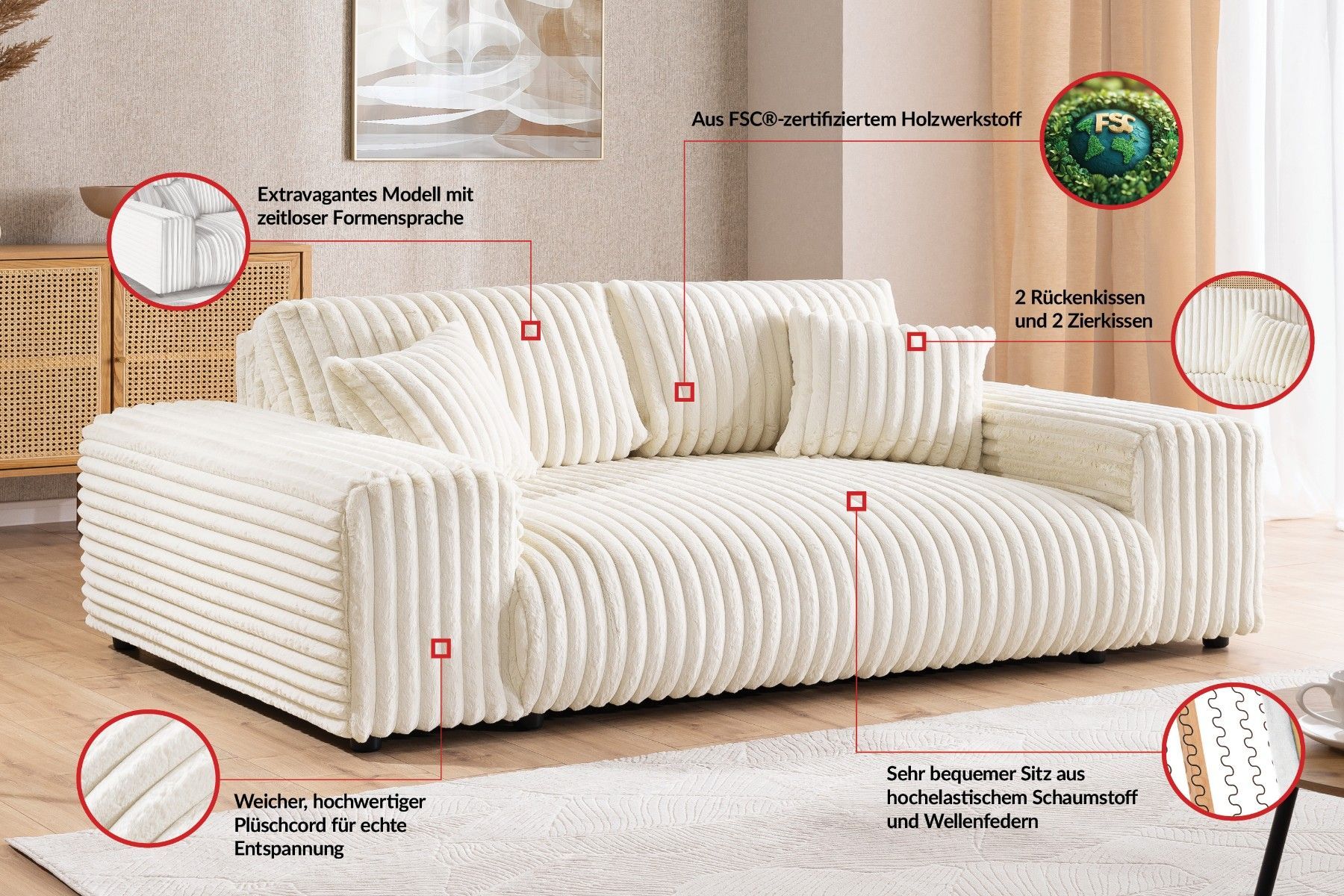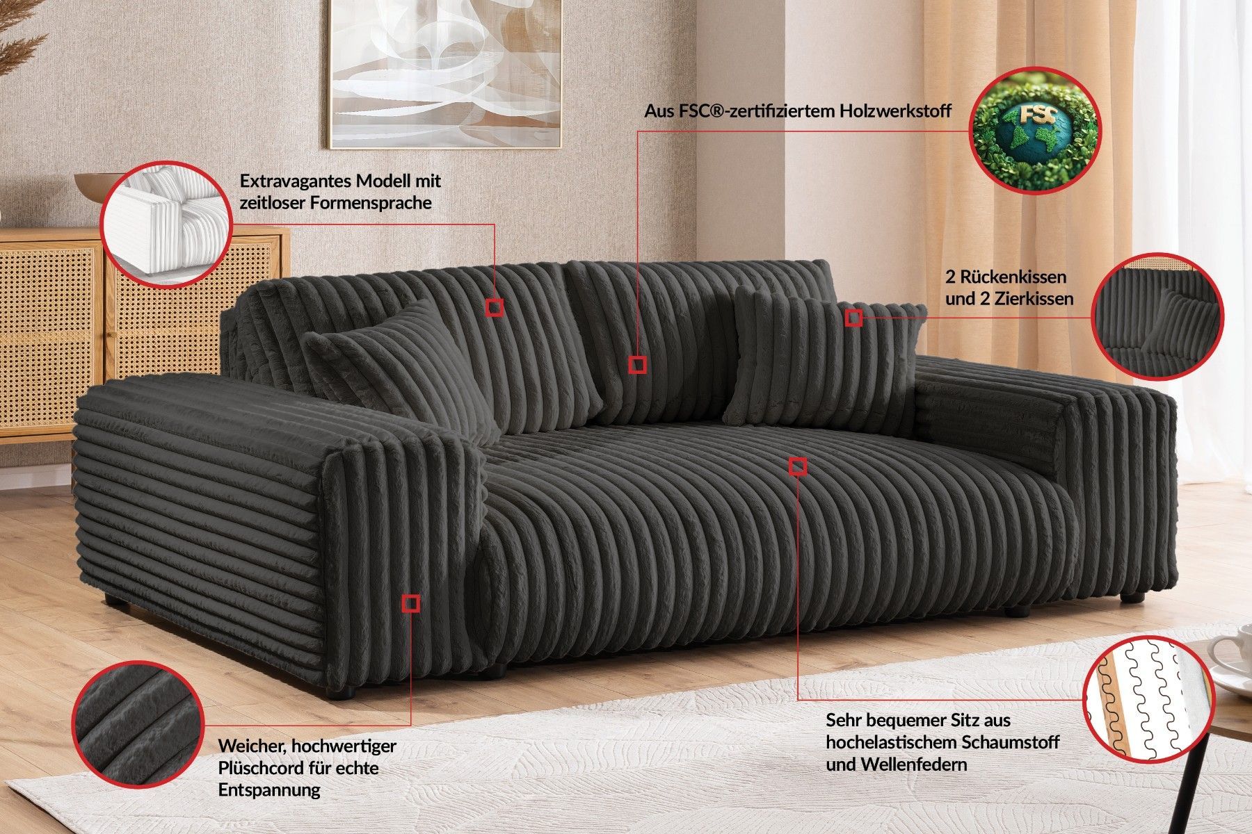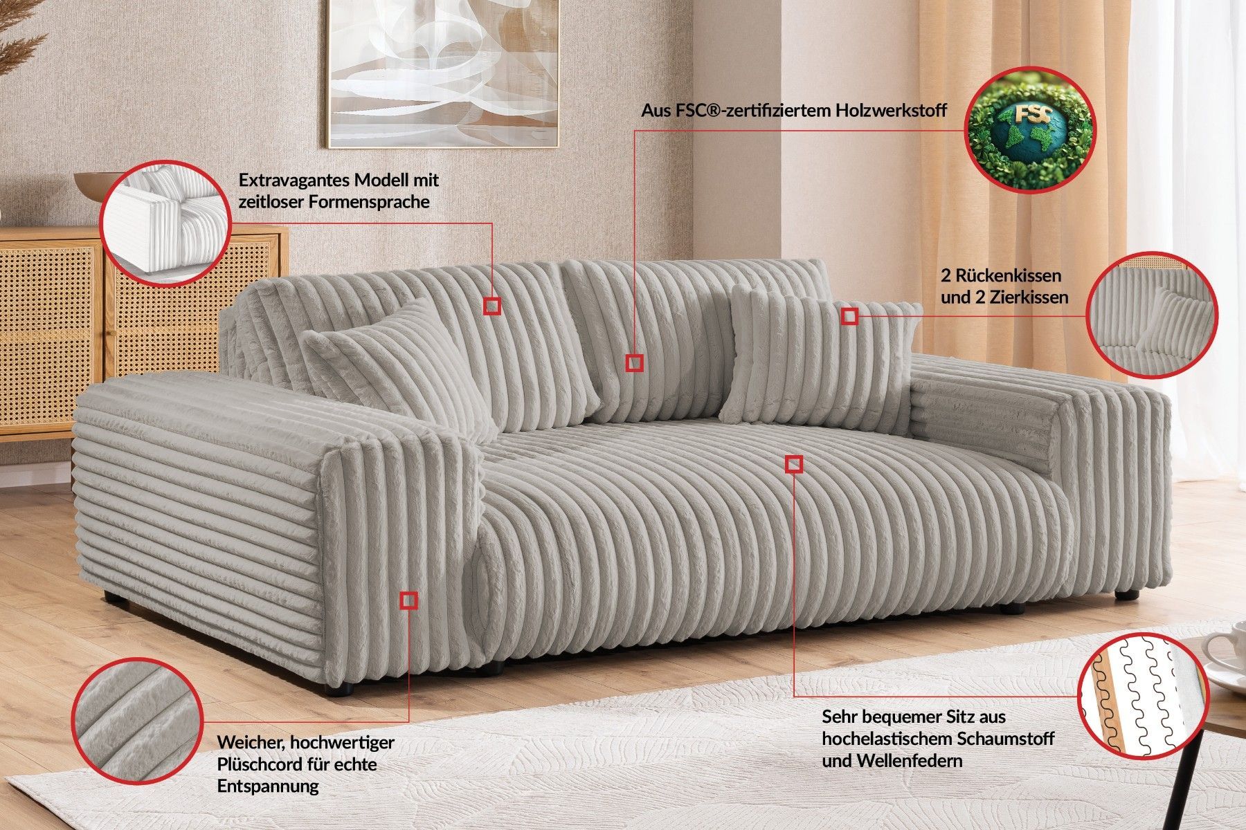 Mollis - Polstergarnitur 3 + 2 + 1 aus Plüschcord mit schöner Sitzkomfort