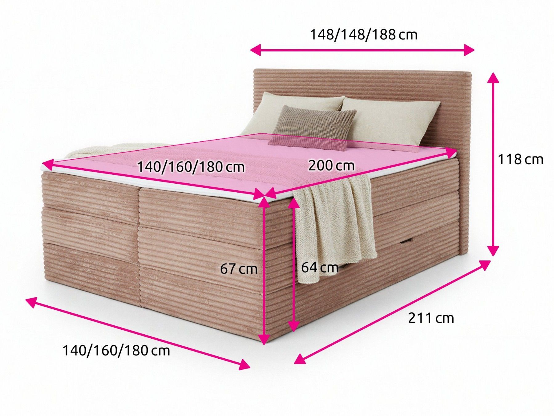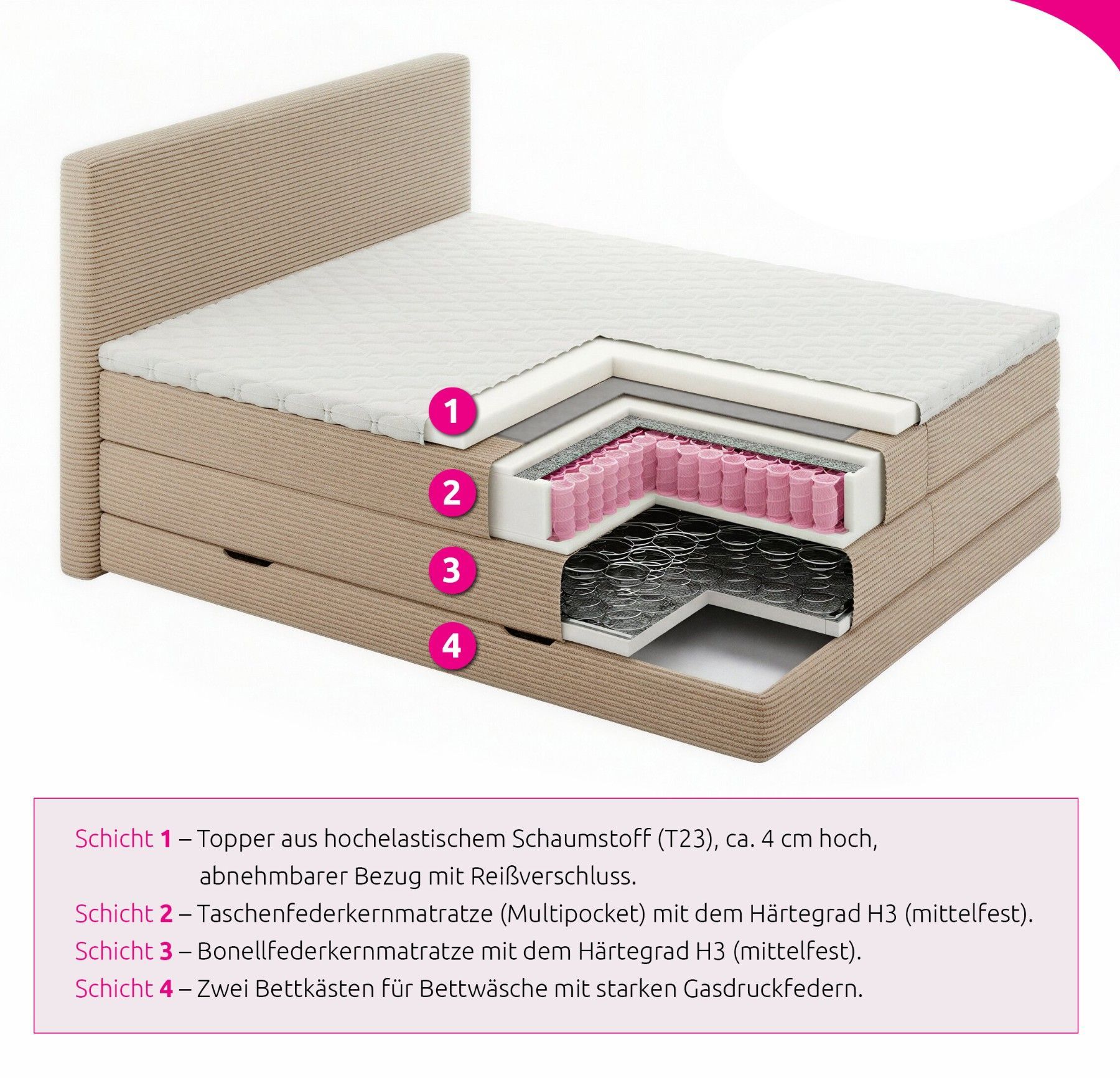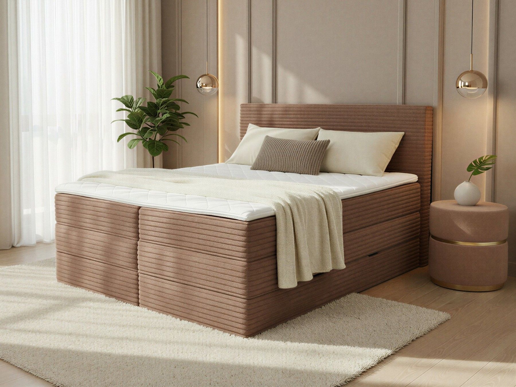 Sofnet Mollo XL Boxspringbett mit Stauraum, 2 Bettkästen und Topper, Bonellkern