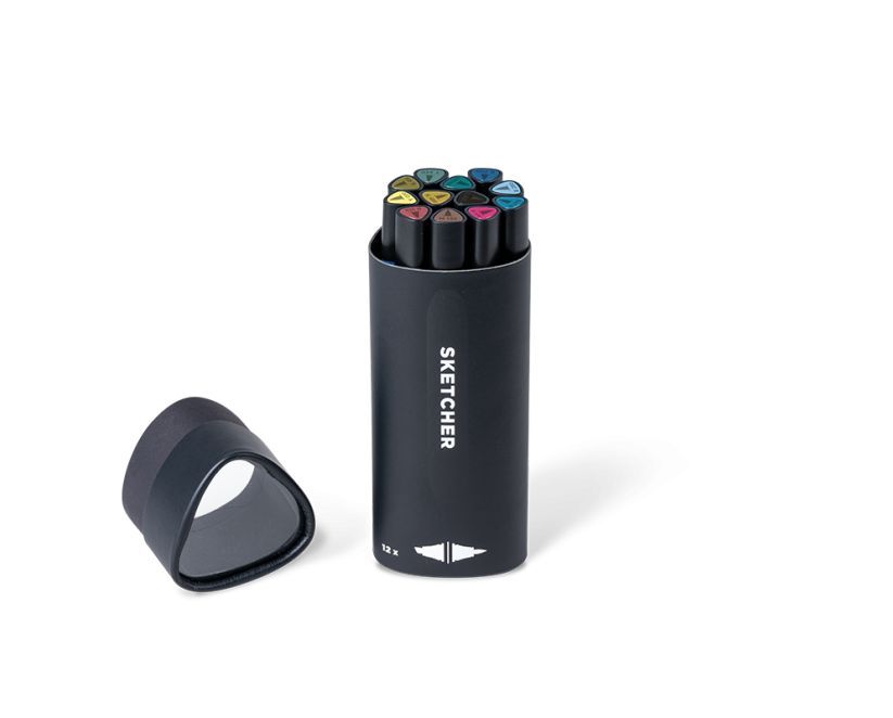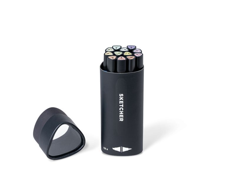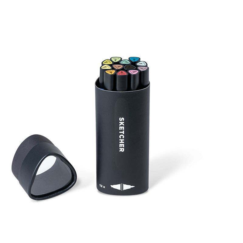 Brush Tip & 3mm Keilspitze, farbintensive Aqua Pro Tinte, schnelltrocknend, für die Anwendung auf Papier) SKETCHER 12er Kits greifen die einzigartige, dreieckige Form des SKETCHER Grafikmarkers auf und sind somit gleichzeitig eine schöne Aufbewahrungsbox für deine neuen Lieblings-Grafikmarker.