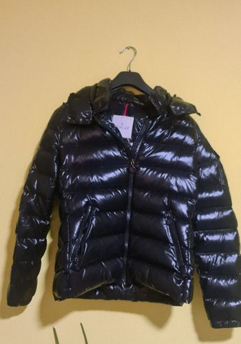 Kurze Daunenjacke von Moncler aus Nylon mit einer abnehmbaren Kapuze ausgestattet. Größe 38 M. Guter Zustand und edel. NP:1.350 Euro