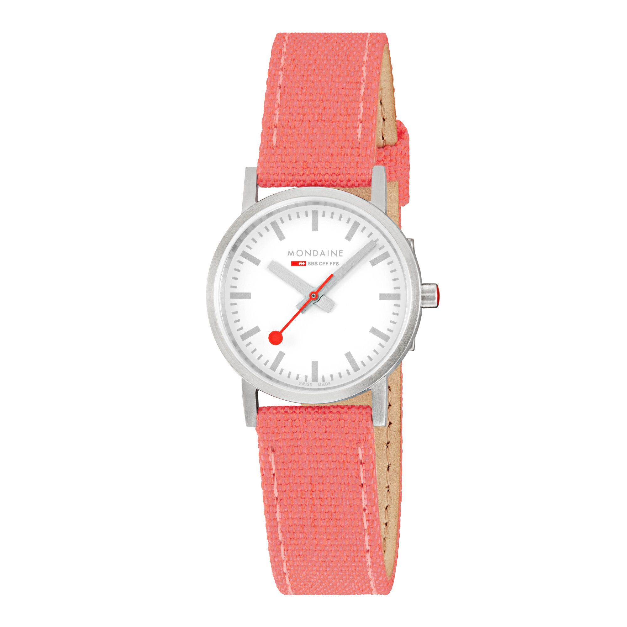 Mondaine Mondaine Damen Armbanduhr Classic 30mm, korall-rote Textiluhr, A658.30323.17SBP