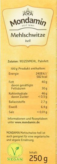 Mondamin Mehlschwitze hell 250 g Vegan 3 Stückzahlen Klassische Mehlschwitze hell Mondamin Klassische Mehlschwitze hell gibt Ihren hellen Soßen eine sämige, vollmundige Bindung und rundet somit Ihre Gerichte angenehm ab. ohne großen Aufwand erhalten Sie mit Mondamin eine garantiert klümpchenfreie kl