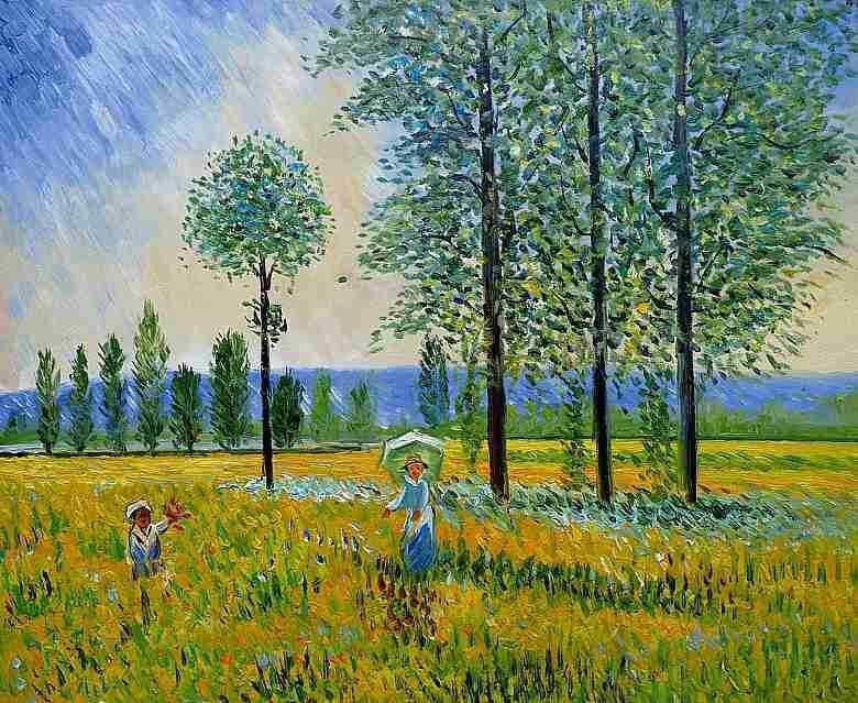 Monet Felder im Frühlling - Leinwandbild auf Keilrahmen, versch. Größen