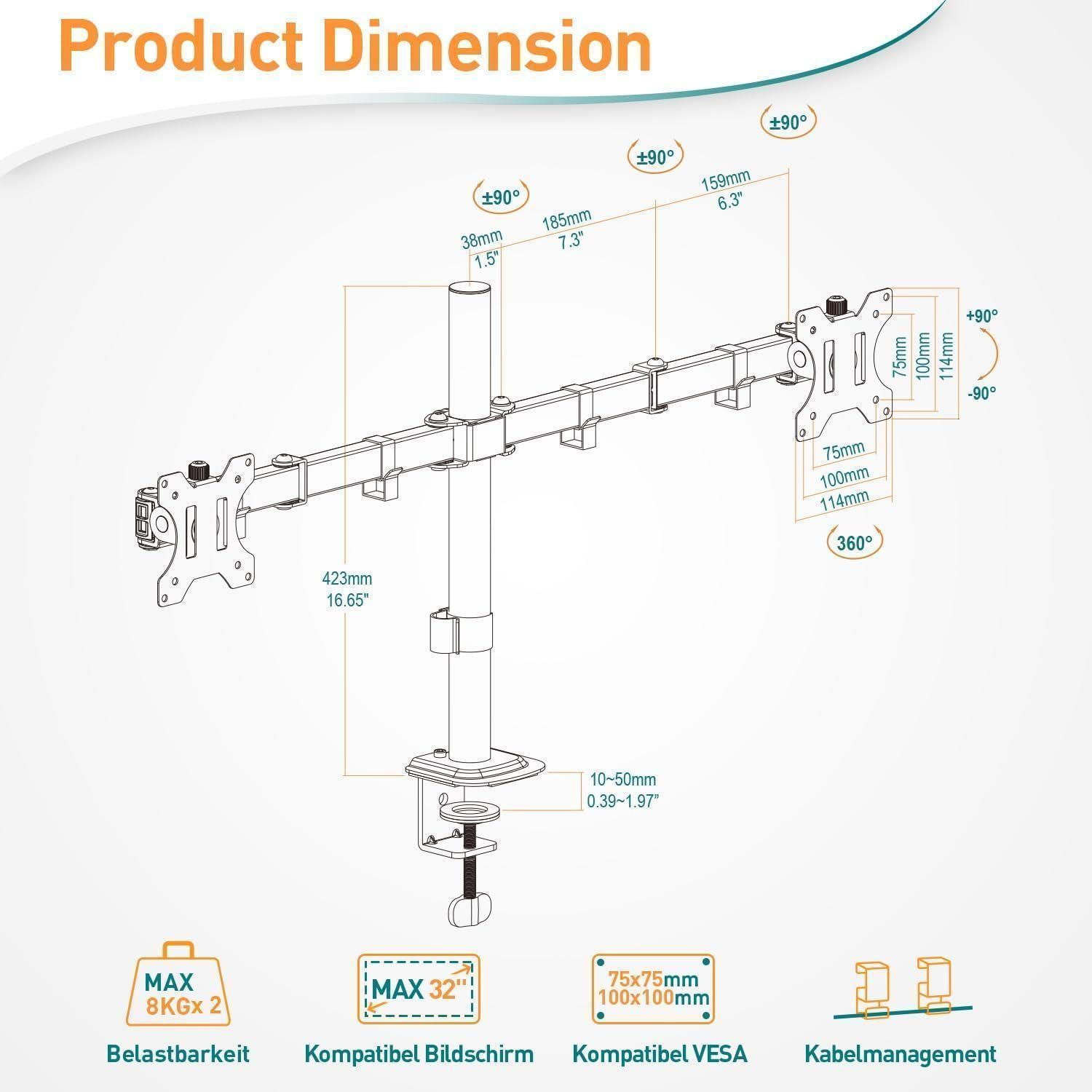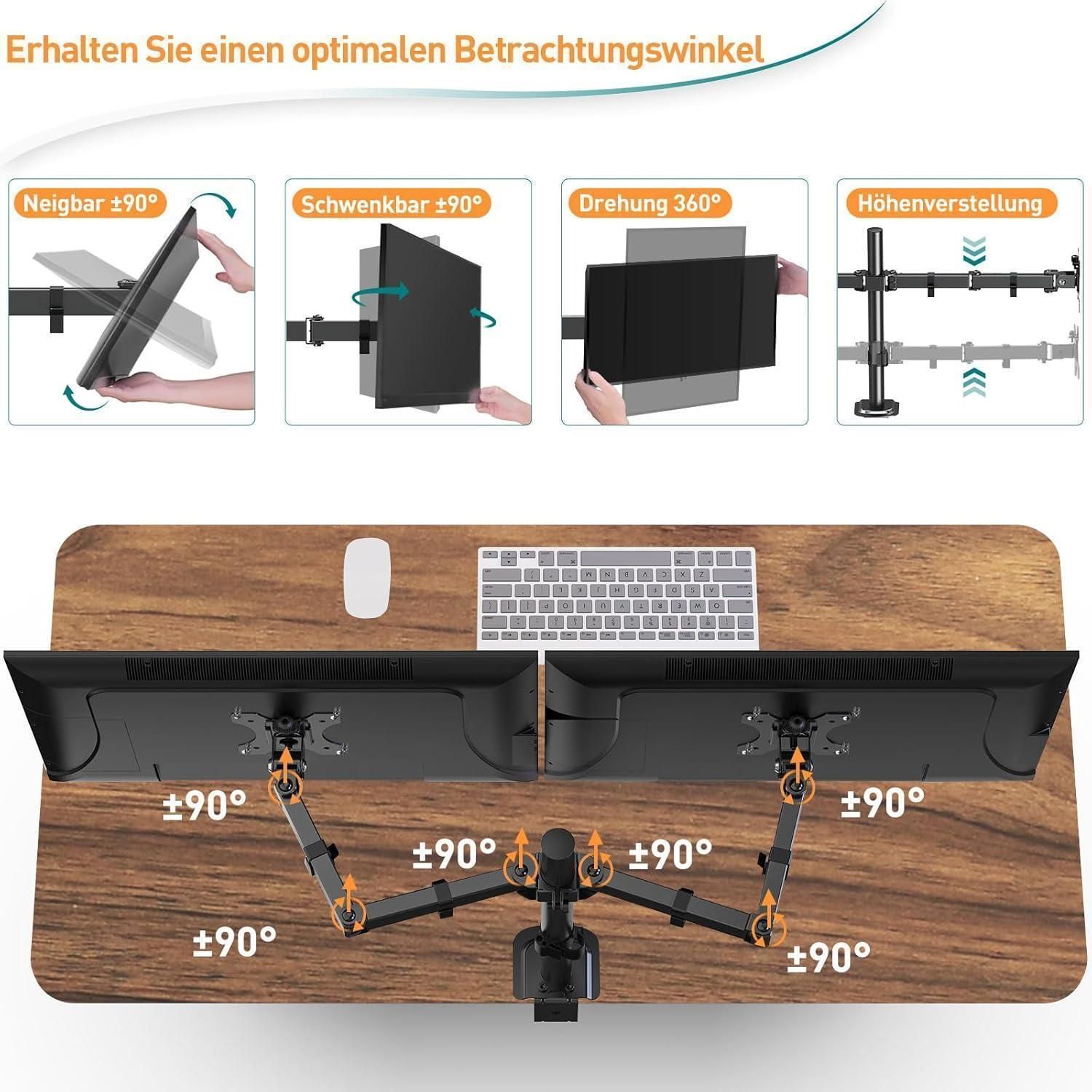 Monitor Halterung 2 Monitore 13-32 Zoll VESA 75/100 Neigbar Schwenkbar