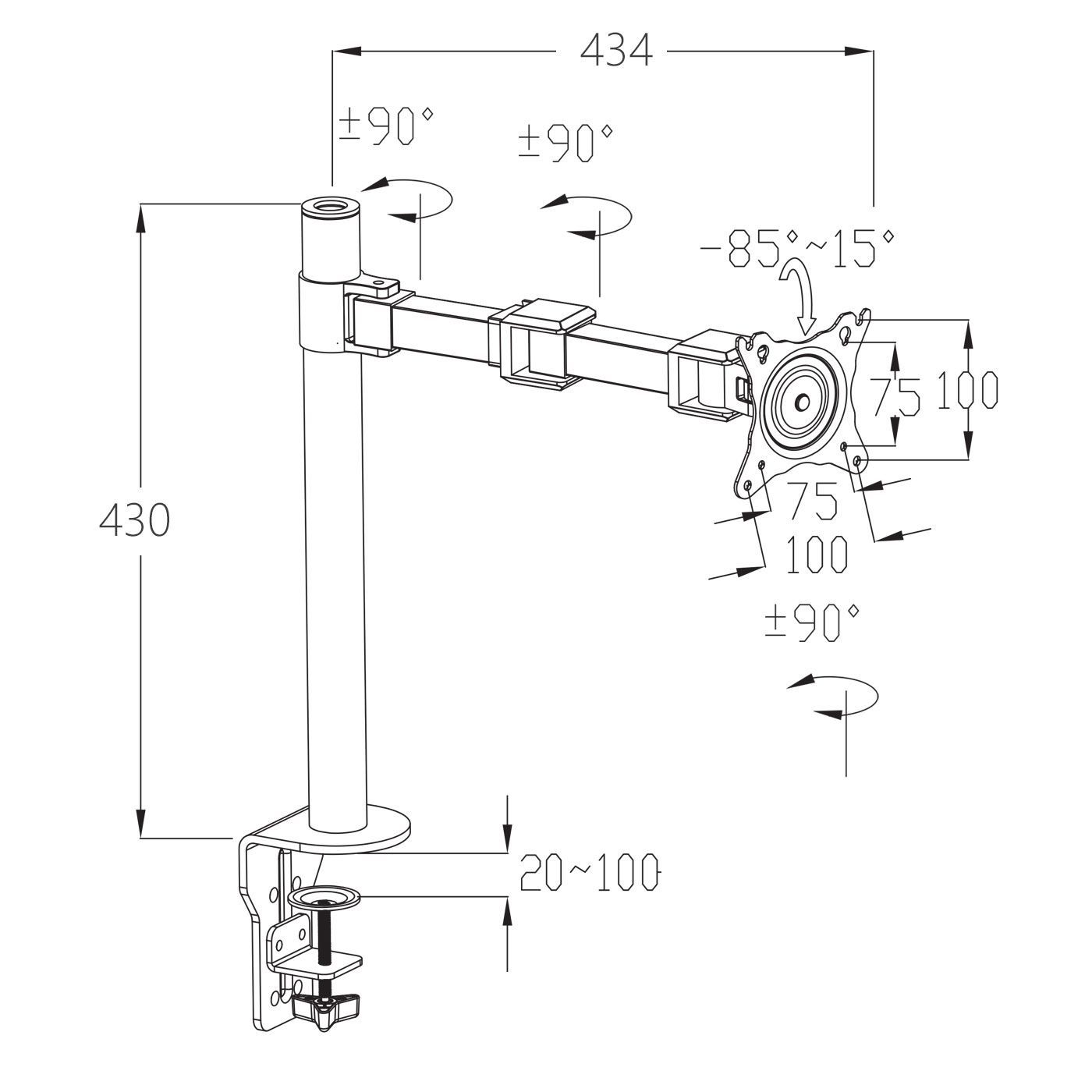 Mendler Monitorhalter HWC-D38, VESA bis 75x75/100x100mm schwenkbar neigbar drehbar bis 9kg