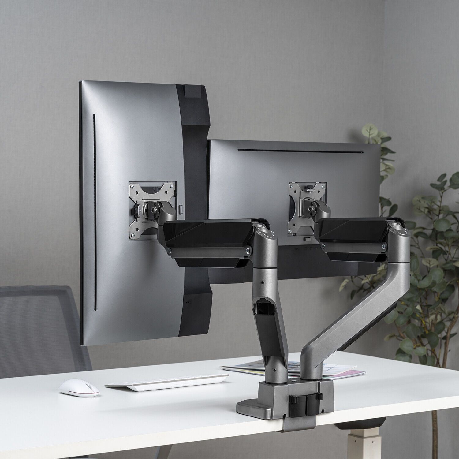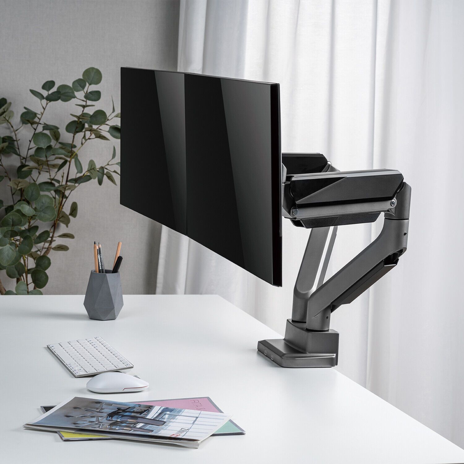Monitorhalterung 2-Fach Tischhalterung Gasfedersystem Neigbar Drehbar 17-35 Zoll
