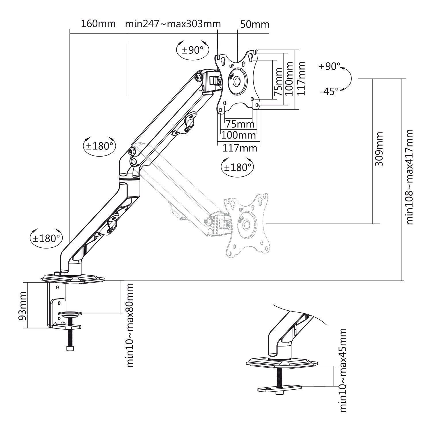Monitorhalterung Tischhalterung Monitorarm für 17"-27" Schwenkbar