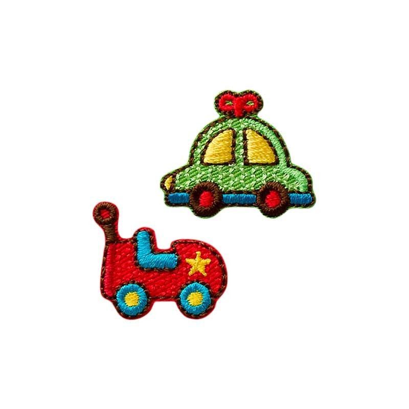 Mono Quick 06019 Spielzeugauto, Rot und Grün, 2er SET Bügelbild, Patch, Auto Pkw