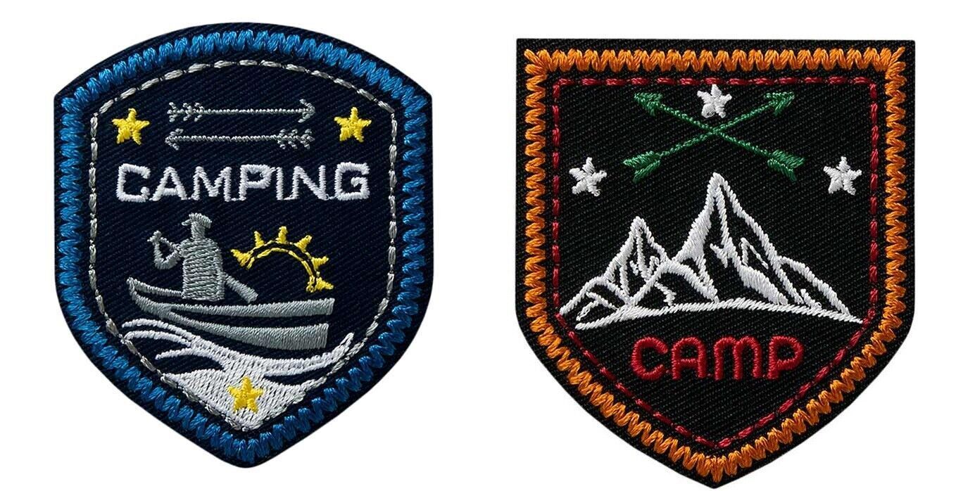 Bügelbild - zum schnellen Ausbessern und Aufpeppen von Textilien. Aufnähen oder aufbügeln. (1 Stück) Maße : Camp ca. 4,8 x 5,5 cm Camping ca. 4,5 x 5,4 cm Material : 58% Polyester 42% Nylon Anleitung ist hinten auf der Verpackung aufgedruckt! Gebrauchsanweisung: 1 . Motiv auf den Stoff legen. 2 . Mi