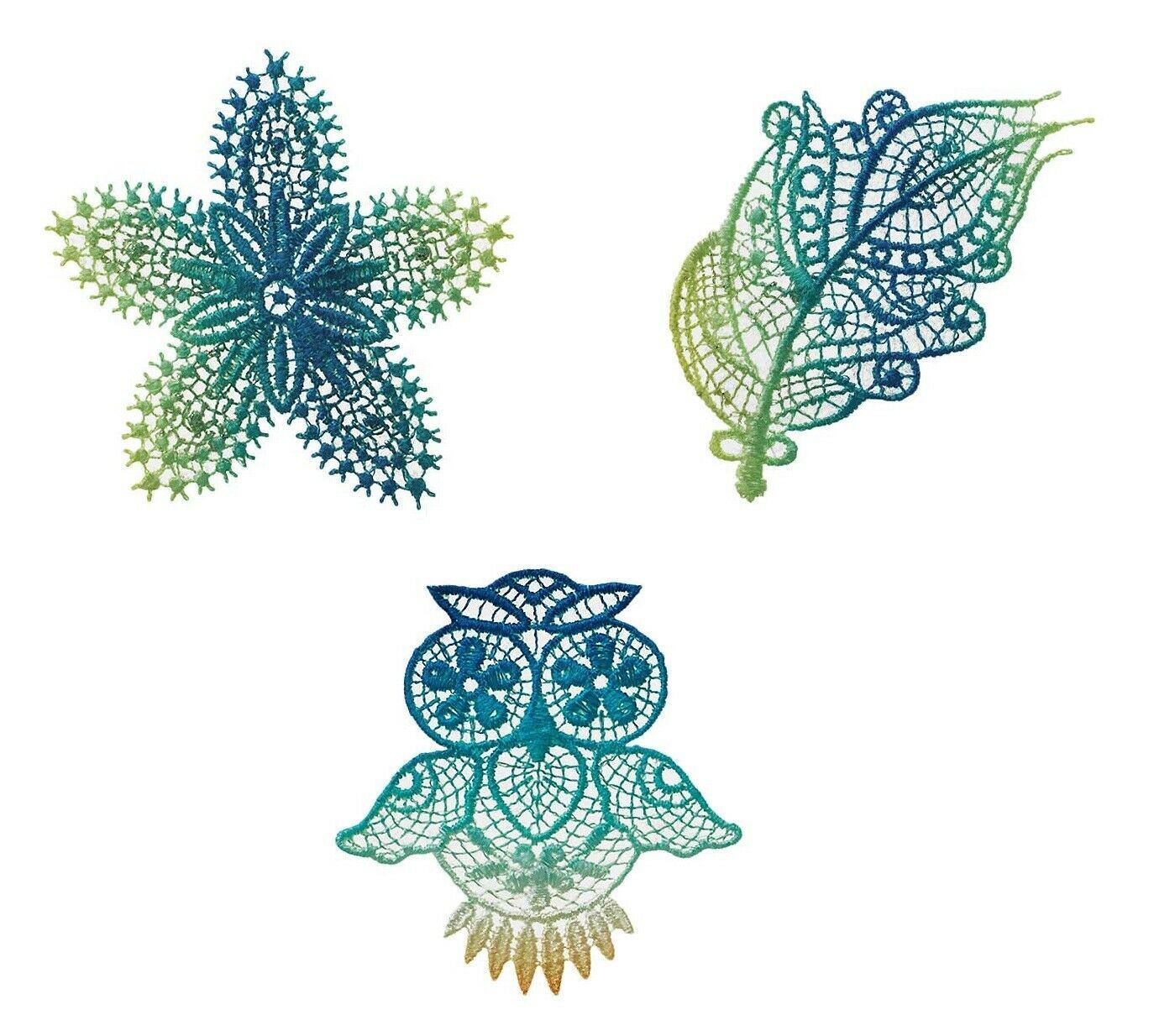 Mono Quick 0818x Farbverlauf Spitze Applikation Bügelbild Patch Eule Feder Blume