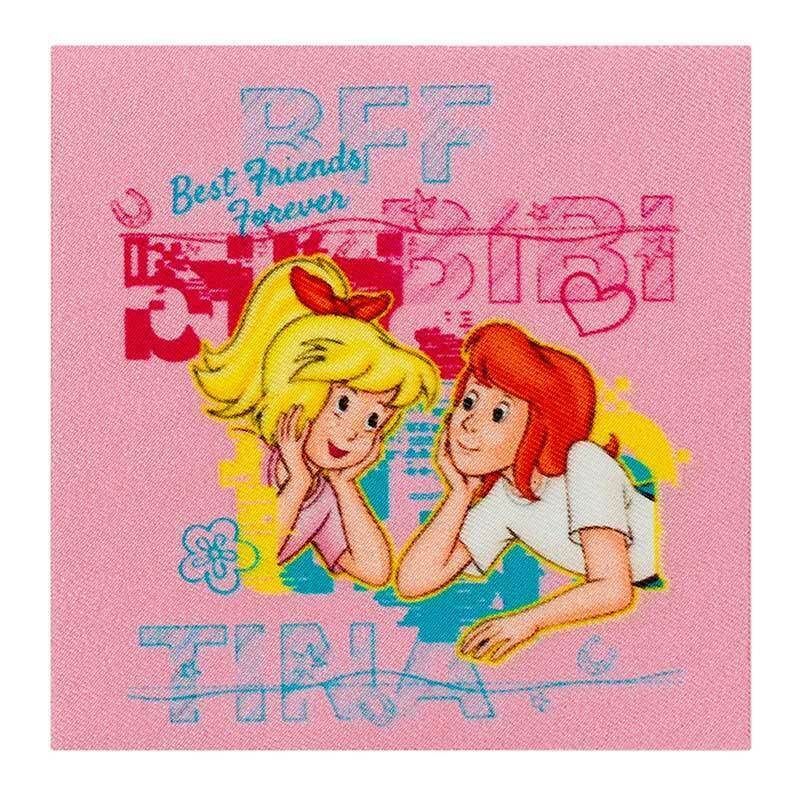 Bibi & Tina Applikationen Bügelbilder - zum schnellen Aufpeppen von Textilien. (1 Stück) Maße: Quadrat Freundinnen blau ca. 6,8 x 6,8 cm Quadrat BFF pink ca. 6,8 x 6,8 cm Bibi und Sabrina ca. 6 x 8 cm Tina und Amadeus ca. 6 x 8,1 cm Material: 60% Polyester, 40% Viskose Anleitung ist hinten auf d